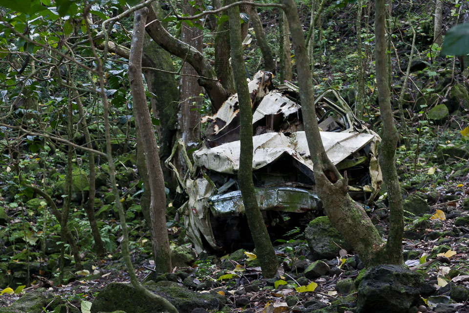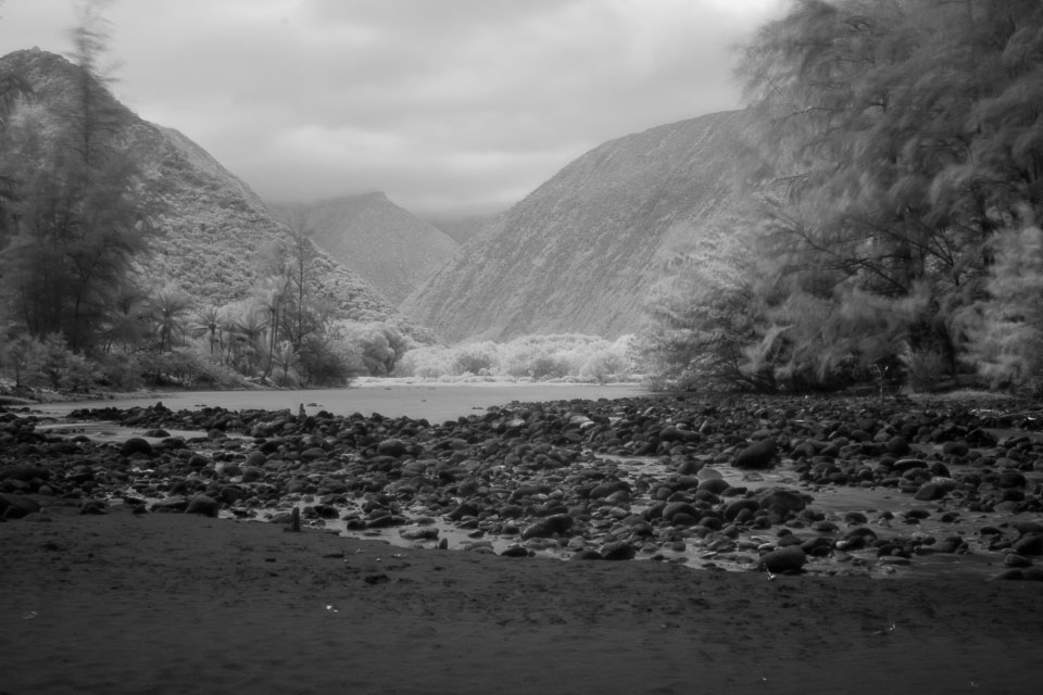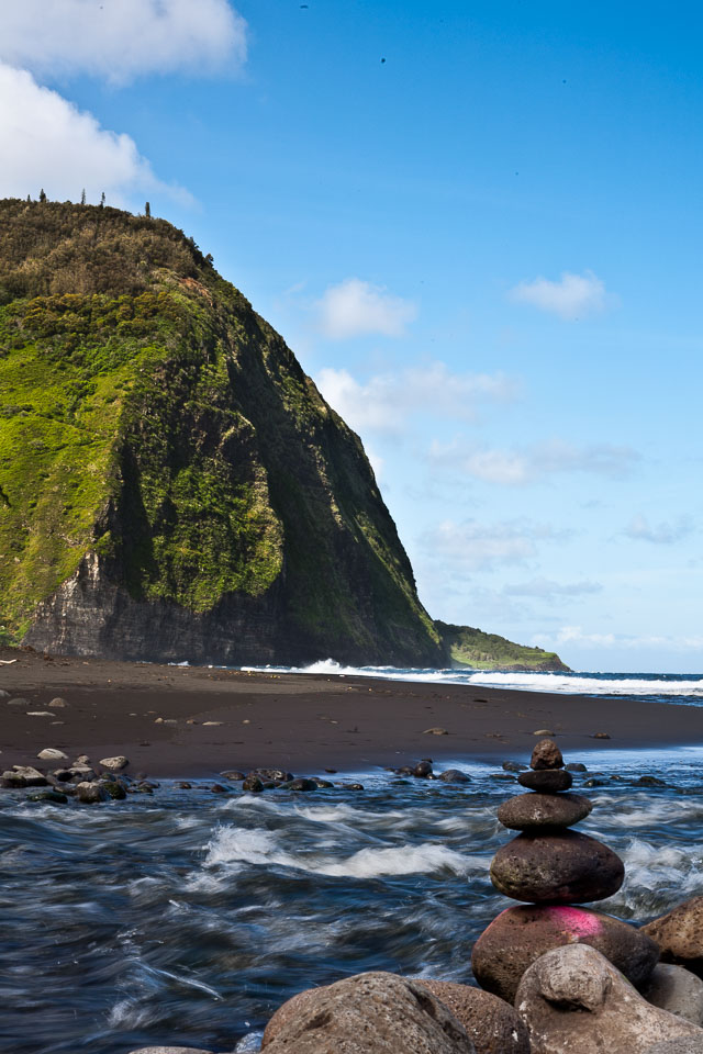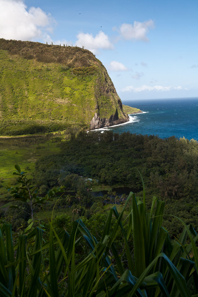 Waipiʻo Valley is a valley located in the Hamakua District of the Big Island of Hawaiʻi. "Waipiʻo" means "curved water" in the Hawaiian language. It was the capital and permanent residence of many early Hawaiian aliʻi (kings). The valley floor at sea level is almost 2,000 ft (610 m) below the surrounding terrain. A steep road leads down into the valley from a lookout point located on the top of the southern wall of the valley. The road gains 800 vertical feet (243.84 m) in 0.6 miles (0.9 km) at a 25% average grade, with steeper grades in sections. This is a paved public road but it is open only to 4 wheel drive vehicles. It is the steepest road of its length in the United States and possibly the world. The valley floor below the cliff is littered with crumpled cars that lost conrtol on the road. The shore line in the valley is a black sand beach, popular with surfers. A few taro farms are located in the valley. Several large waterfalls fall into the valley to feed the river which flows from the foot of the largest falls at the back of the valley out to the ocean.