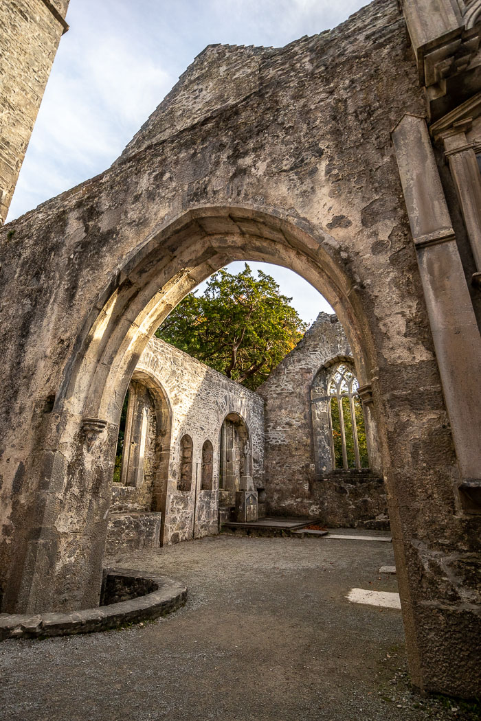 Muckross Abbey, Muckross house and trails along the shores of Muckross Lake.