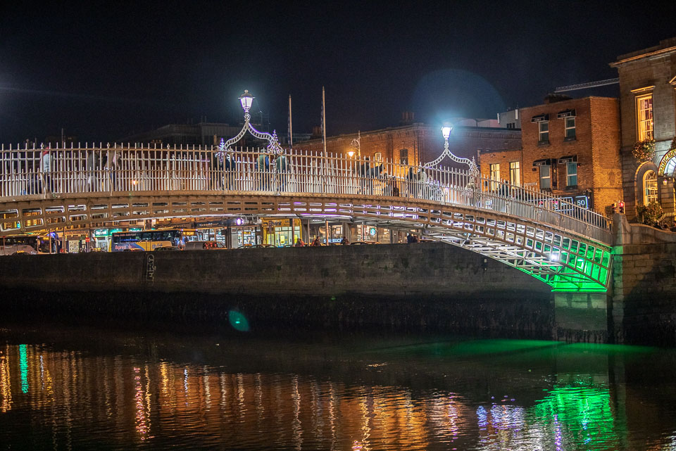 River Liffey at night, Dublin, Ireland. Taken on October 14, 2018. Filename: 20181014-IMG_7016