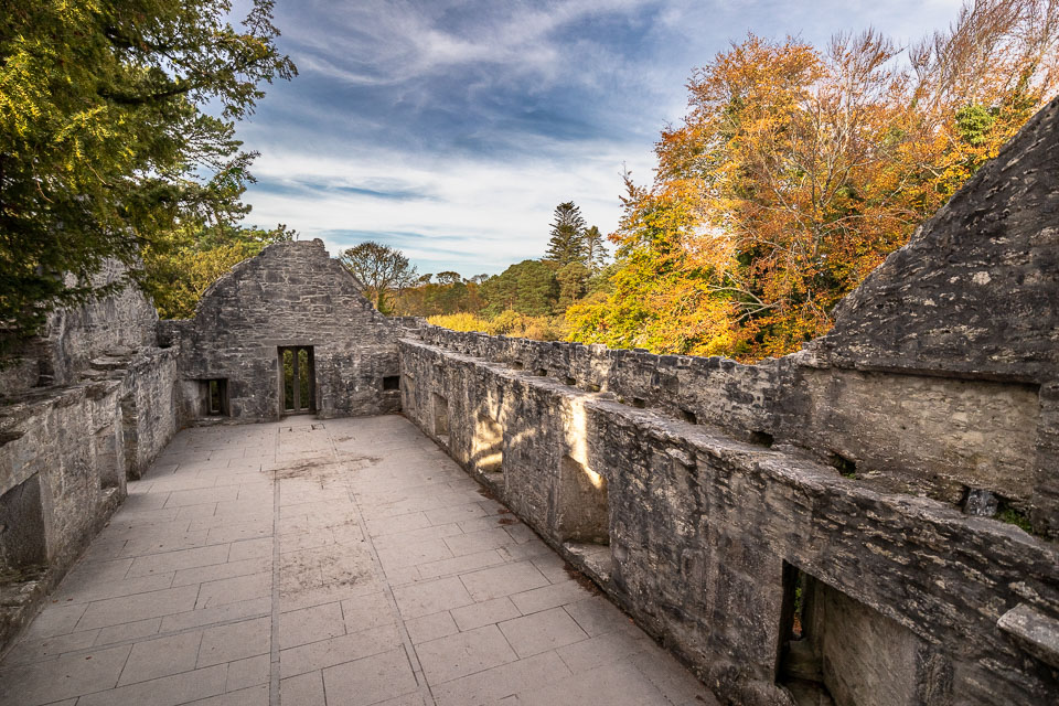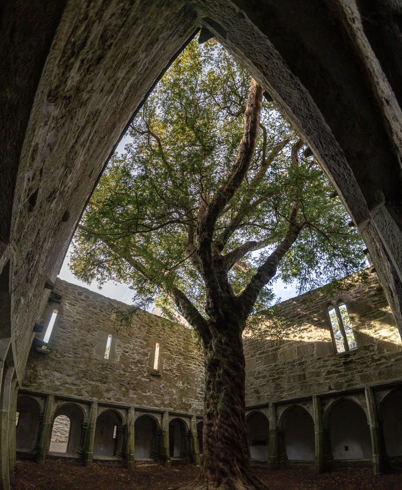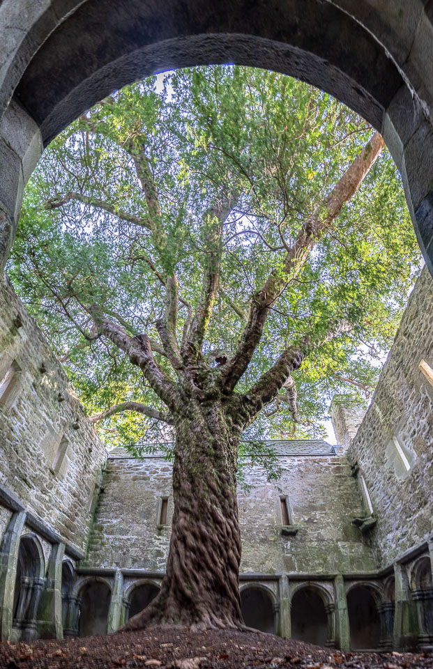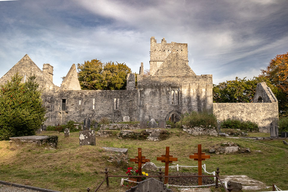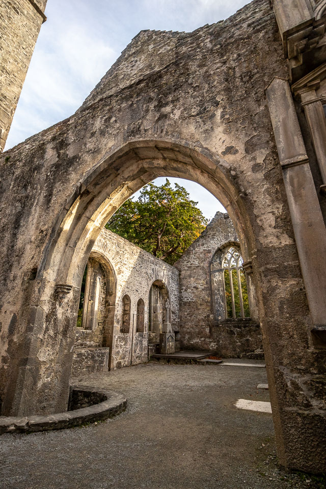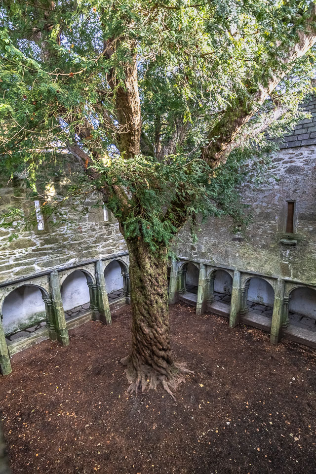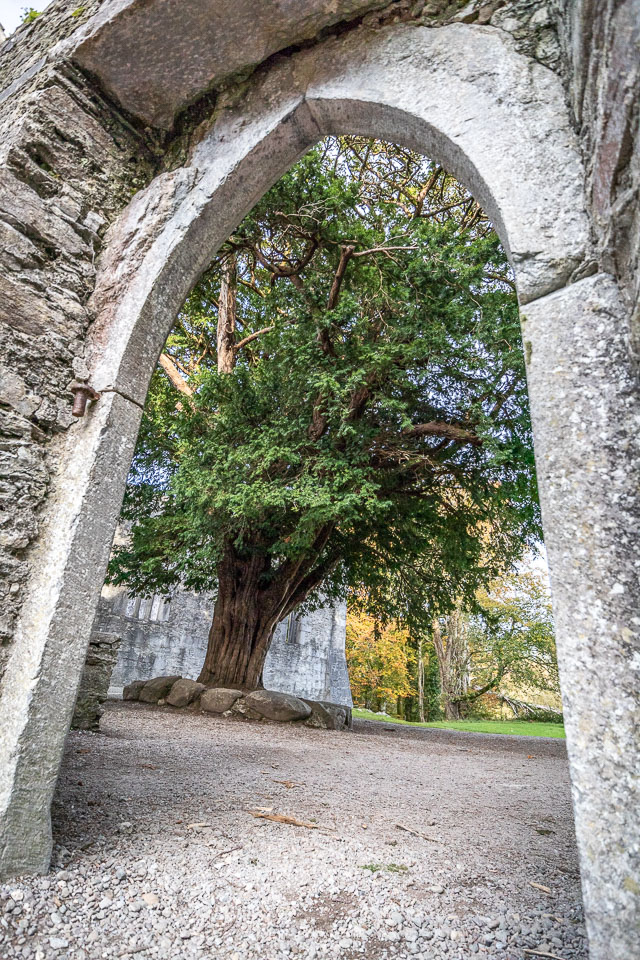 Muckross Abbey (Irish: Mainistir Locha Léin and Mainistir Mhucrois) is one of the major ecclesiastical sites found in the Killarney National Park. It was founded in 1448 as a Franciscan friary for the Observantine Franciscans. It has had a violent history and has been damaged and reconstructed many times. Today the abbey is largely roofless although, apart from this, is generally quite well preserved. Its most striking feature is a central courtyard, which contains a large yew tree and is surrounded by a vaulted cloister.