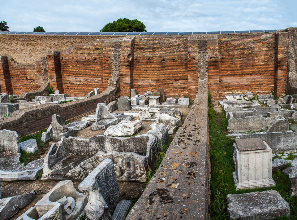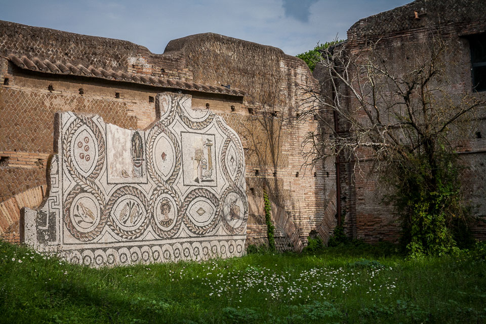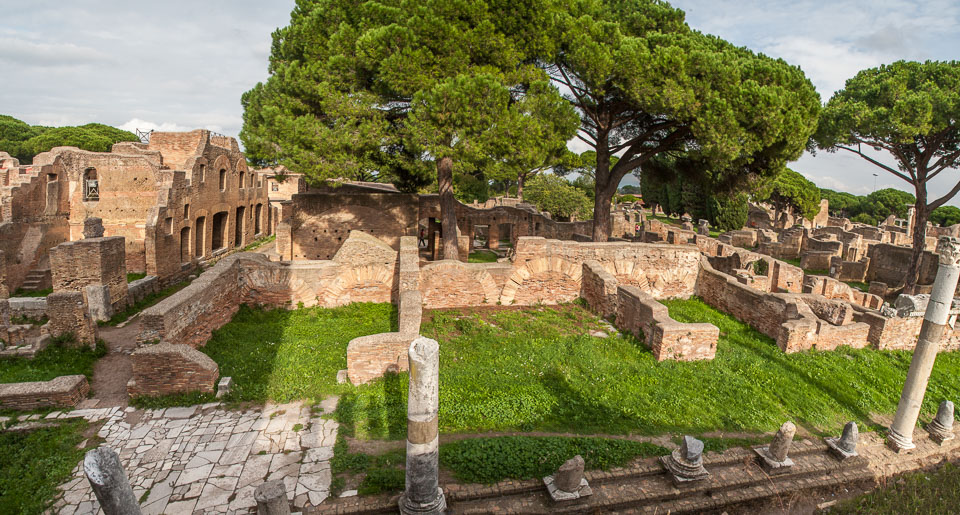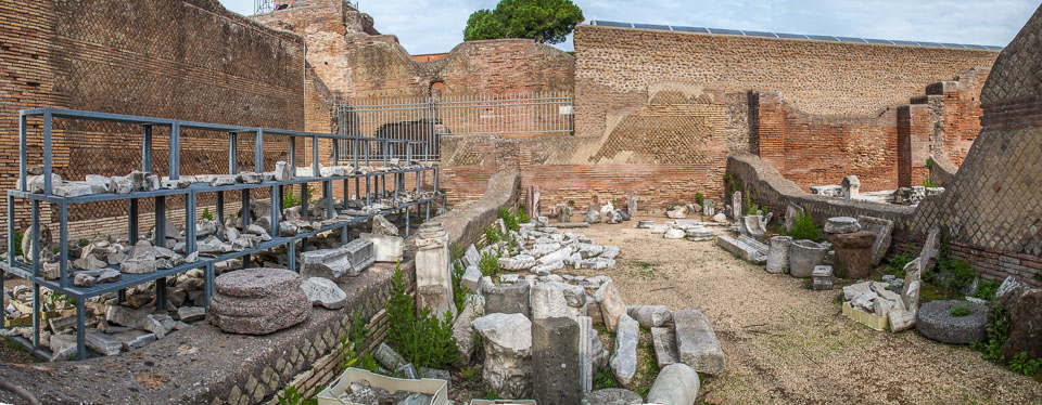 Built sometime in the 4th century BCE, Ostia was the primary port for both commercial and naval shipping for the Republic and Empire, until Portus was constructed in the 1st century CE. A complete town, with it's own forums, temples and theater, it was also full of warehouses for storing goods transitioning between land and sea transport. After Portus became the primary port faciluty, Ostia transitioned into more of a resort town and transhipper of luxury items. The shifting course of the Tiber both flooded the cit repeatedly and moved the seafront and river shore away from Ostia. By the 9th century CE, the town was abanodoned. Repeated flooding covered everything with layers of preserving silt. The town was excavated in the late 1930s.