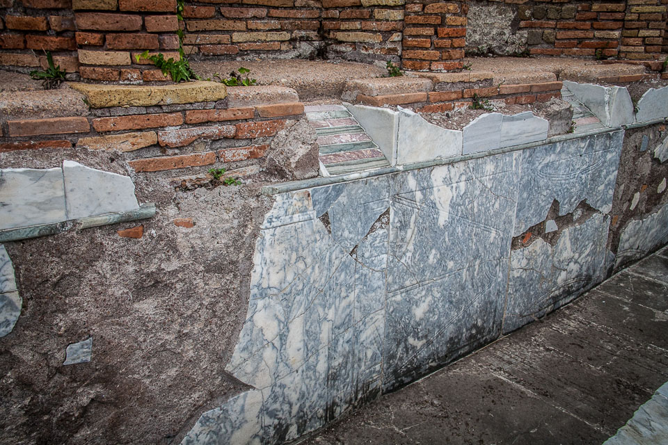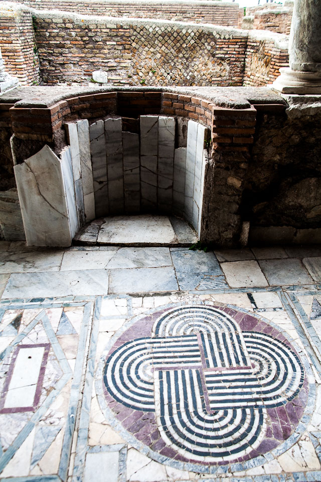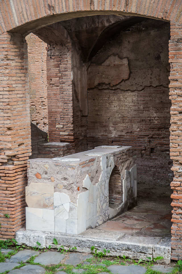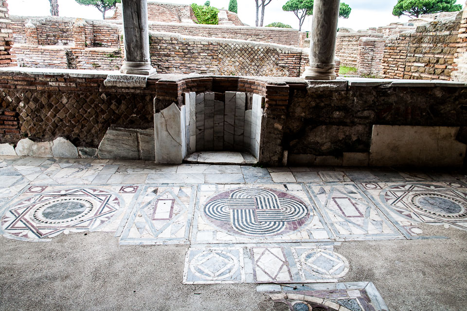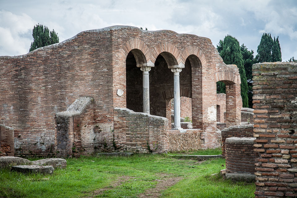 Built sometime in the 4th century BCE, Ostia was the primary port for both commercial and naval shipping for the Republic and Empire, until Portus was constructed in the 1st century CE. A complete town, with it's own forums, temples and theater, it was also full of warehouses for storing goods transitioning between land and sea transport. After Portus became the primary port faciluty, Ostia transitioned into more of a resort town and transhipper of luxury items. The shifting course of the Tiber both flooded the cit repeatedly and moved the seafront and river shore away from Ostia. By the 9th century CE, the town was abanodoned. Repeated flooding covered everything with layers of preserving silt. The town was excavated in the late 1930s.