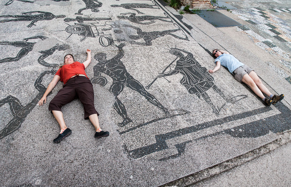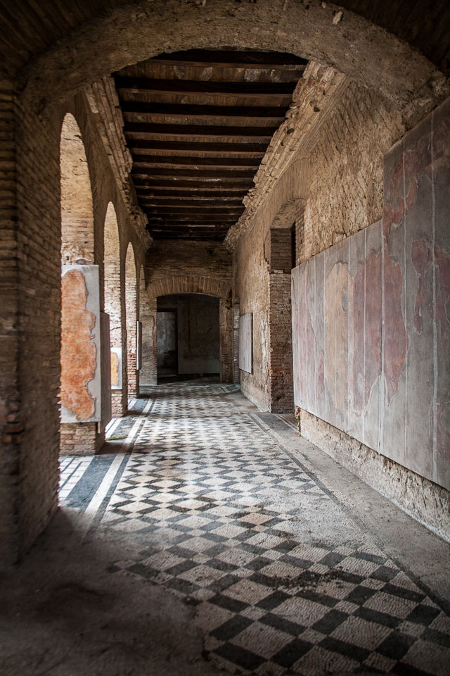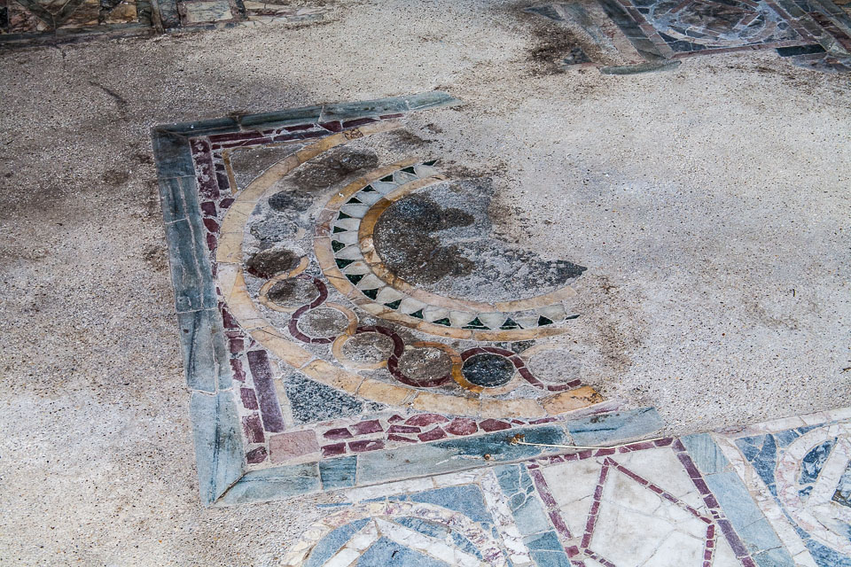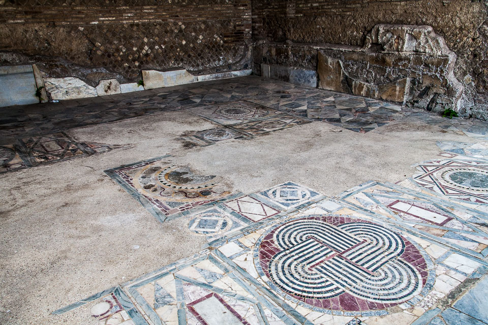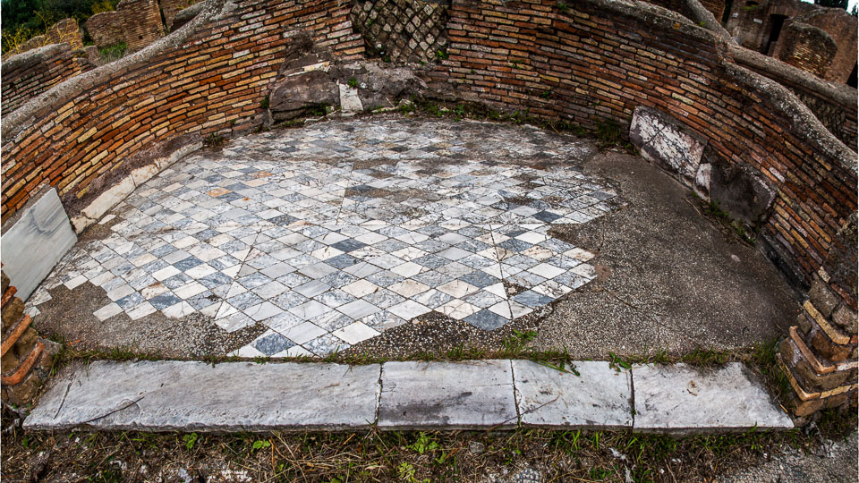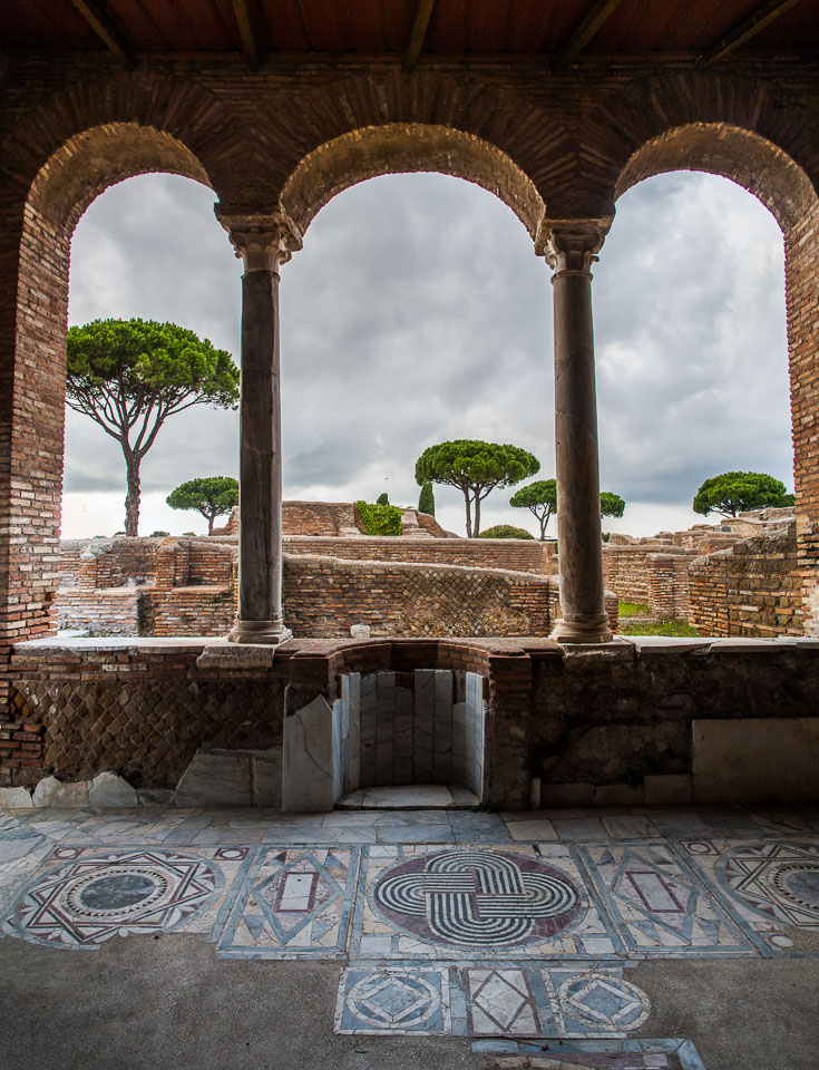Built sometime in the 4th century BCE, Ostia was the primary port for both commercial and naval shipping for the Republic and Empire, until Portus was constructed in the 1st century CE. A complete town, with it's own forums, temples and theater, it was also full of warehouses for storing goods transitioning between land and sea transport. After Portus became the primary port faciluty, Ostia transitioned into more of a resort town and transhipper of luxury items. The shifting course of the Tiber both flooded the cit repeatedly and moved the seafront and river shore away from Ostia. By the 9th century CE, the town was abanodoned. Repeated flooding covered everything with layers of preserving silt. The town was excavated in the late 1930s.