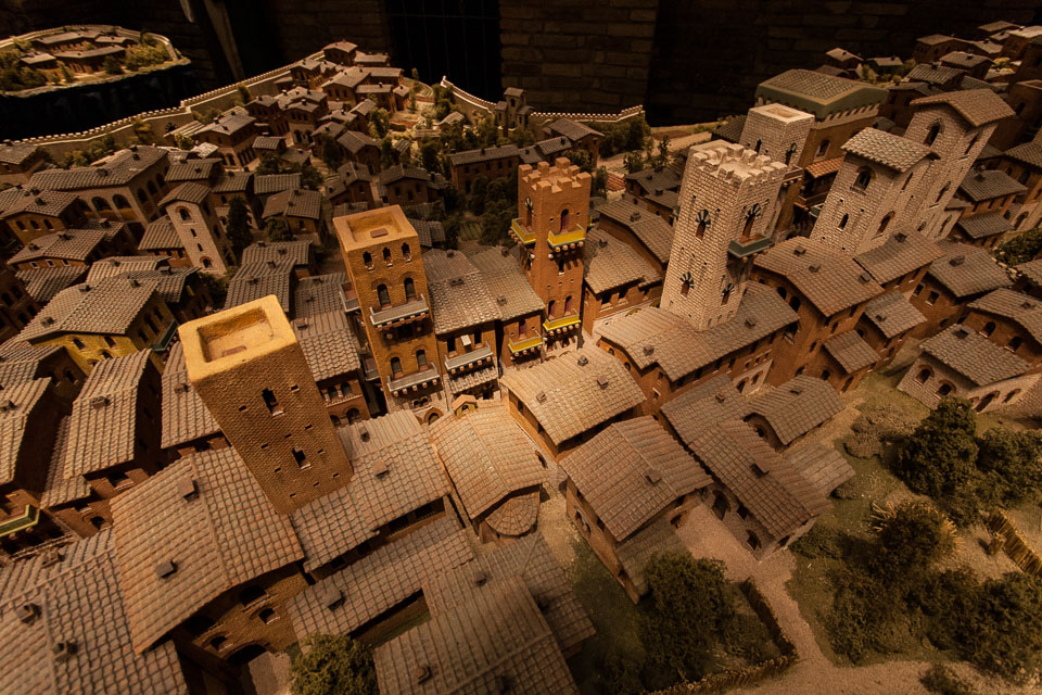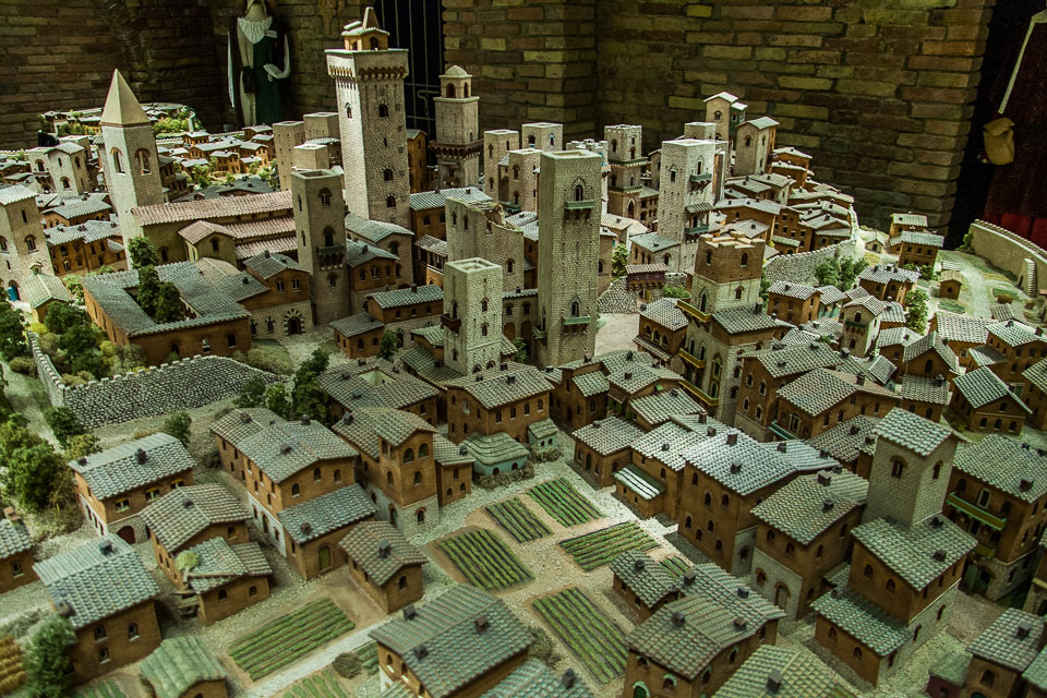 Today it's a tourist trap. Nothing is made here, and nothing much new develops in this little town. Unless it relates to extracting euros from visitors, such as the torture museum (not shown) and the miniature model of the town as it was in the twelfth century. With the picturesque towers and commanding view of the Tuscan countryside It's a mighty interesting and pretty trap though!