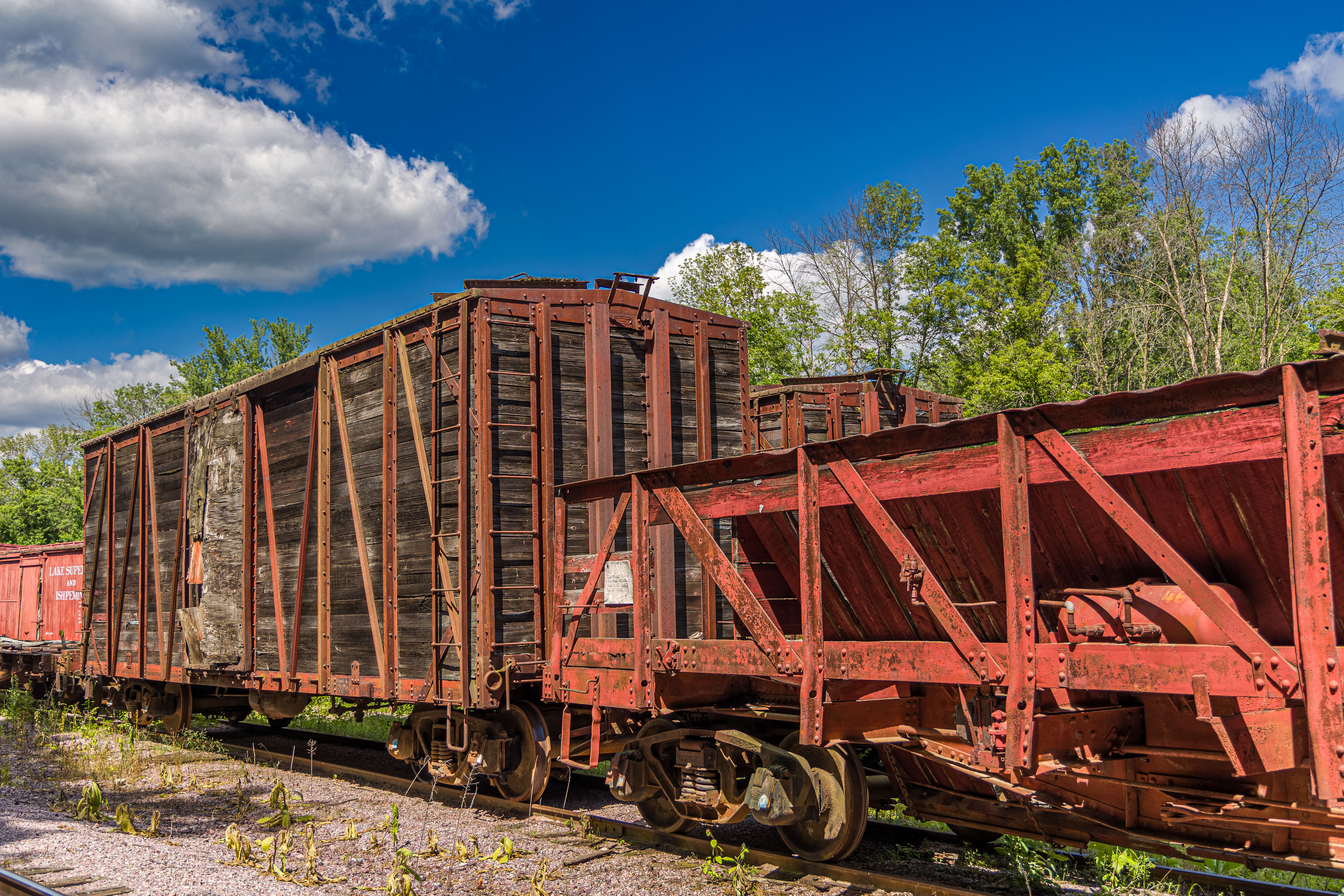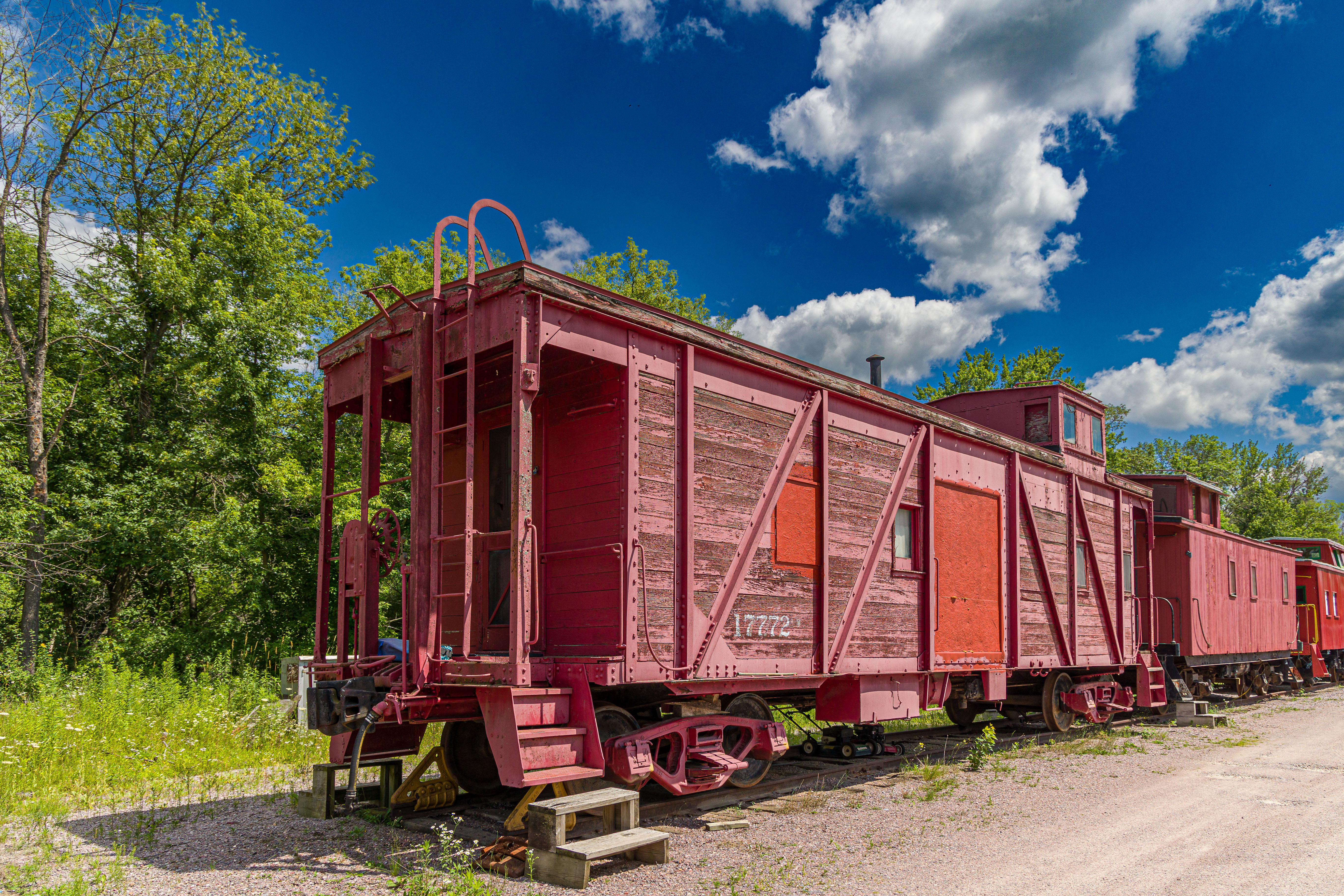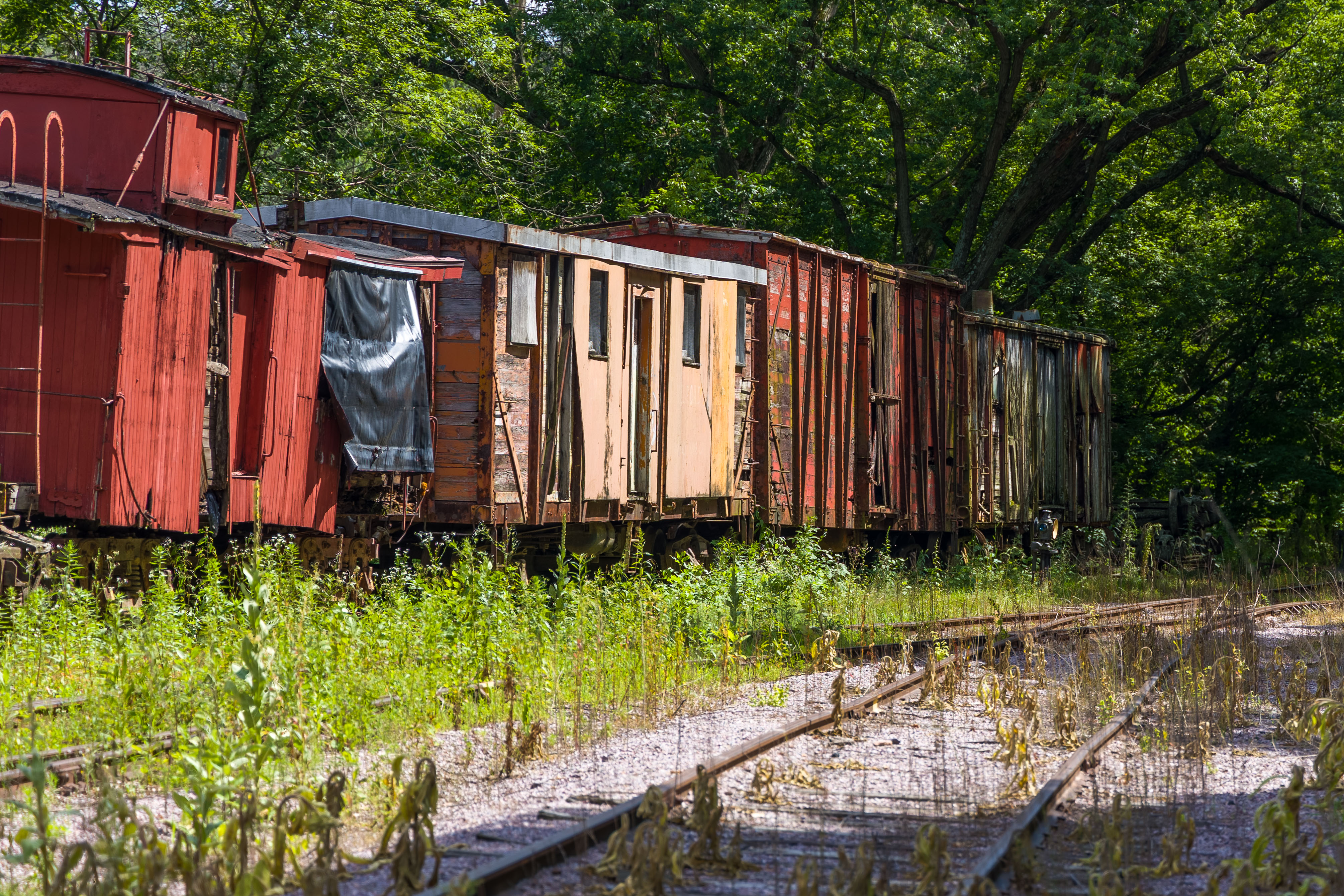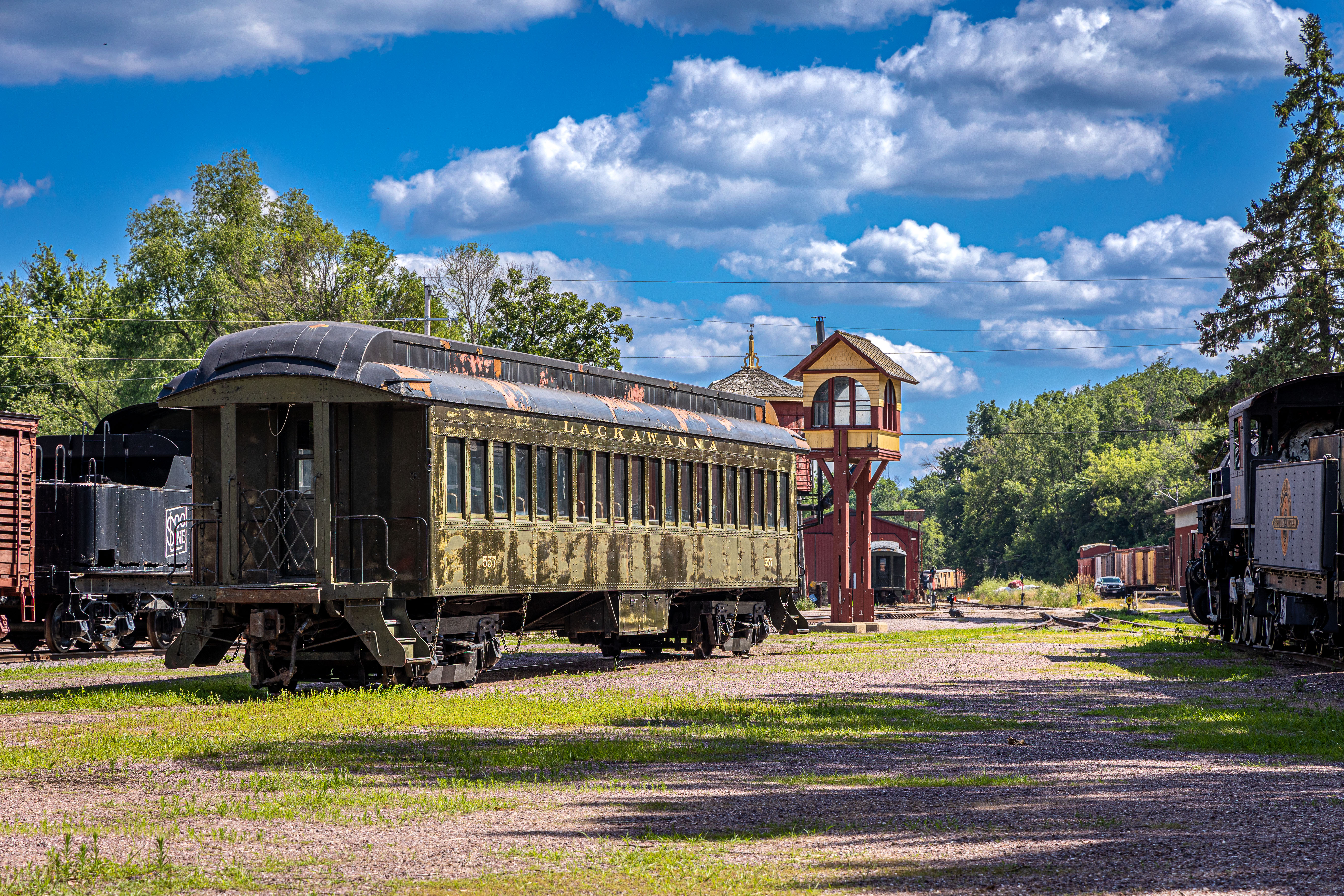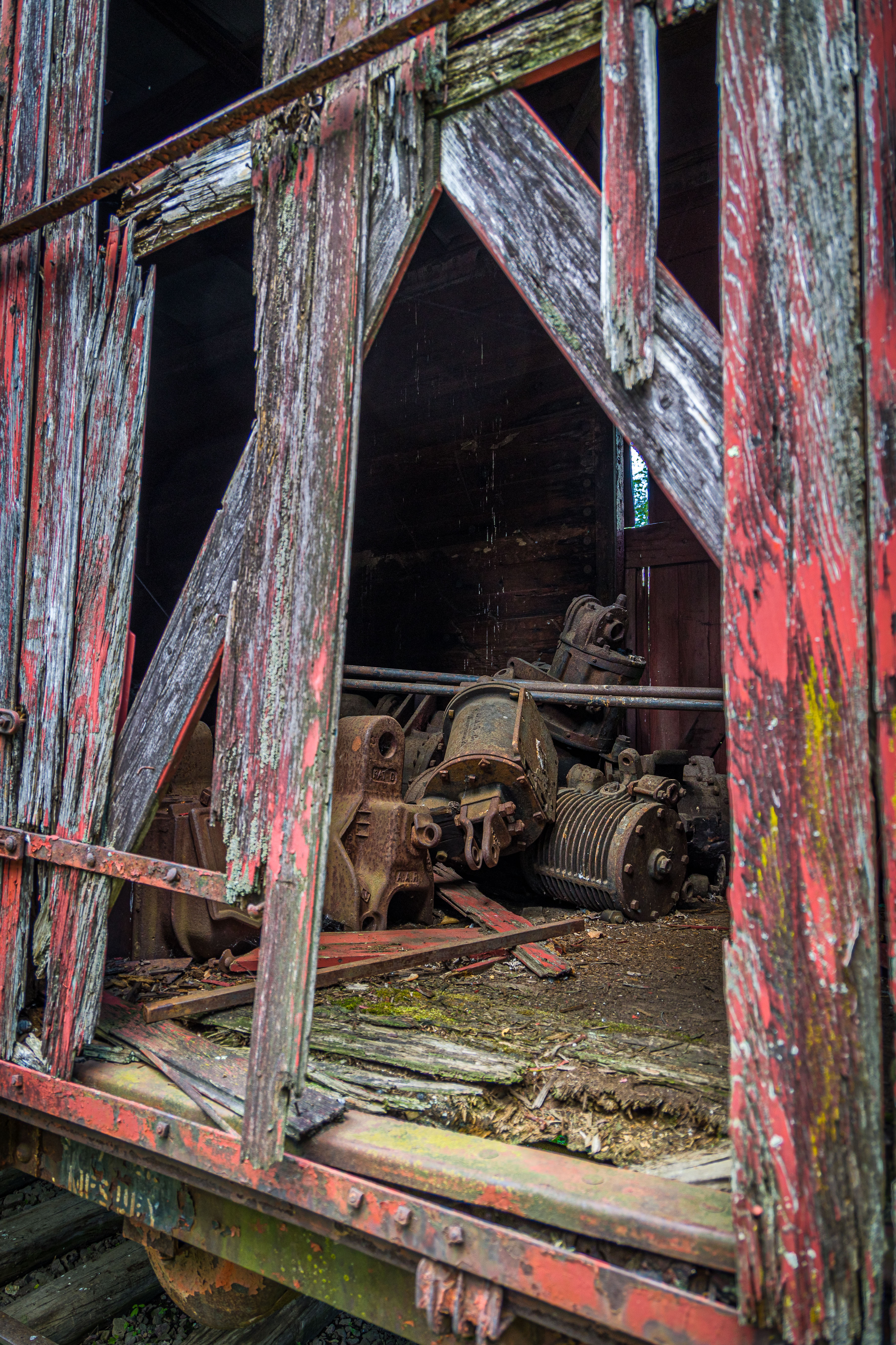 The Mid-Continent Railway Museum's collection emphasizes the preservation of railroad items operated in the upper Midwest from the period of 1880–1916, what the organization refers to as the "Golden Age of Railroading" The museum has 13 steam and 7 diesel locomotives and over 100 other pieces of rolling stock. The museum has the largest collection of wooden passenger cars in the United States as well as being home to five of only six surviving wooden boxcars built by the Mather Stock Car Company and the nation's last surviving fish car, Wisconsin Fish Commission "Badger Car #2" Many of these shots are from wandering around "the boneyard" of decommissioned engines and rolling stock in various states of disrepair and salvage.