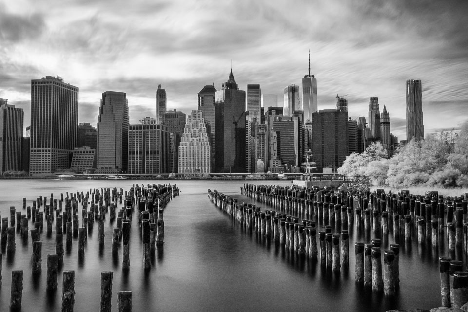 Manhattan over Old Pier 1, in infrared, New York City. Taken on October 7, 2017. Filename: 20171007-IMG_3831