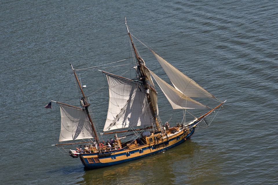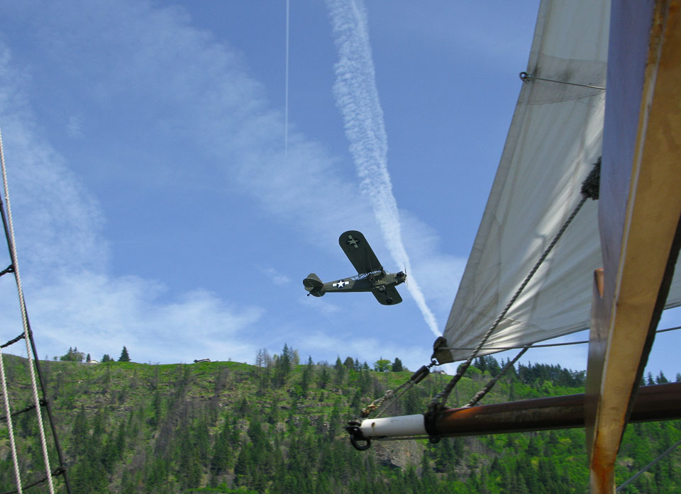 Images of the Lady Washington and Hawaiian Chieftain in Hood RIver, OR, including a visit to WAAAM and aerial photos