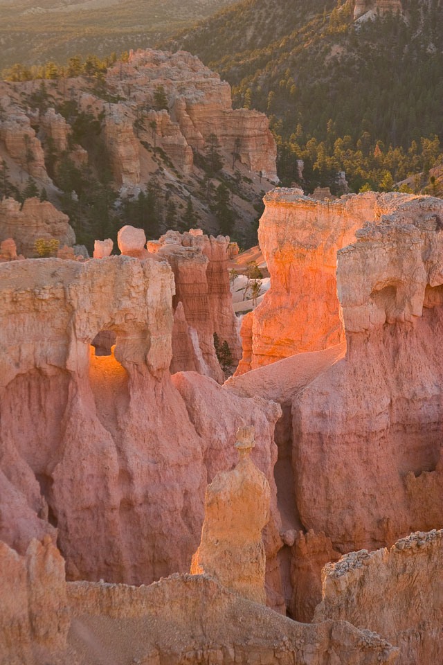 Located in southwestern Utah in the United States. The major feature of the park is Bryce Canyon, which despite its name, is not a canyon, but a collection of giant natural amphitheaters along the eastern side of the Paunsaugunt Plateau. Bryce is distinctive due to geological structures called hoodoos, formed by frost weathering and stream erosion of the river and lake bed sedimentary rocks. The red, orange, and white colors of the rocks provide spectacular views for park visitors.