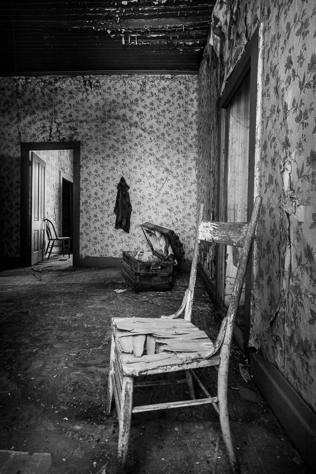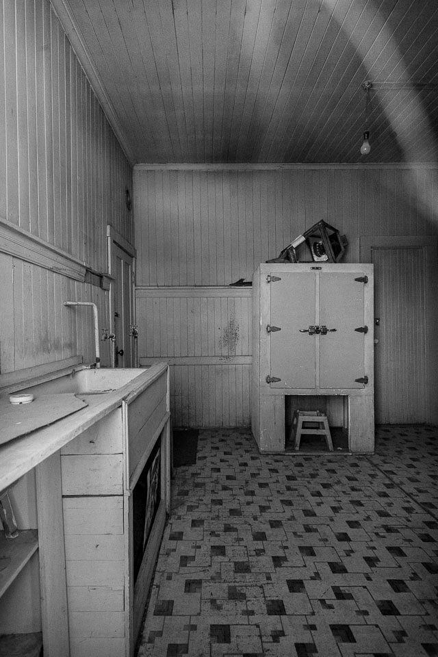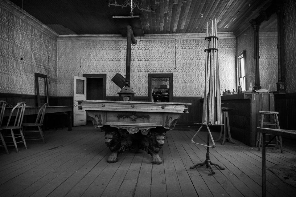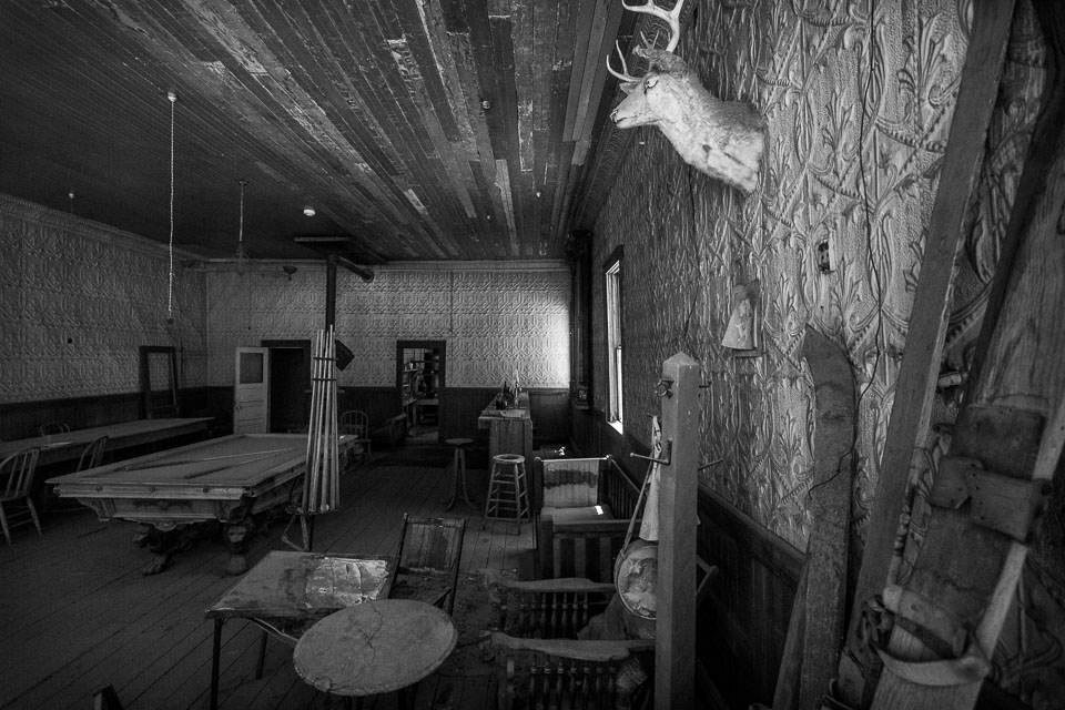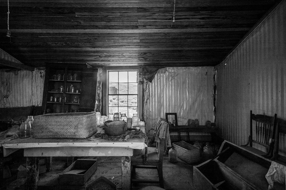Bodie is a ghost town in the Bodie Hills east of the Sierra Nevada mountain range North of Mono Lake. A California State Historic Park, Bodie is a genuine California gold-mining ghost town. It is currently preserved in a state of "arrested decay". Interiors remain as they were left and stocked with goods. It was apparently so expensive to frieght goods out by wagons during the boom, the people just abandonded anything they could not carry. At it's height from 1877-1880, 7000 people lived there. By 1900, less than 1000 people were there, by 1920 ony 120. 170 of more than 2000 buildings remain. there is much more info on the wikipedia page.