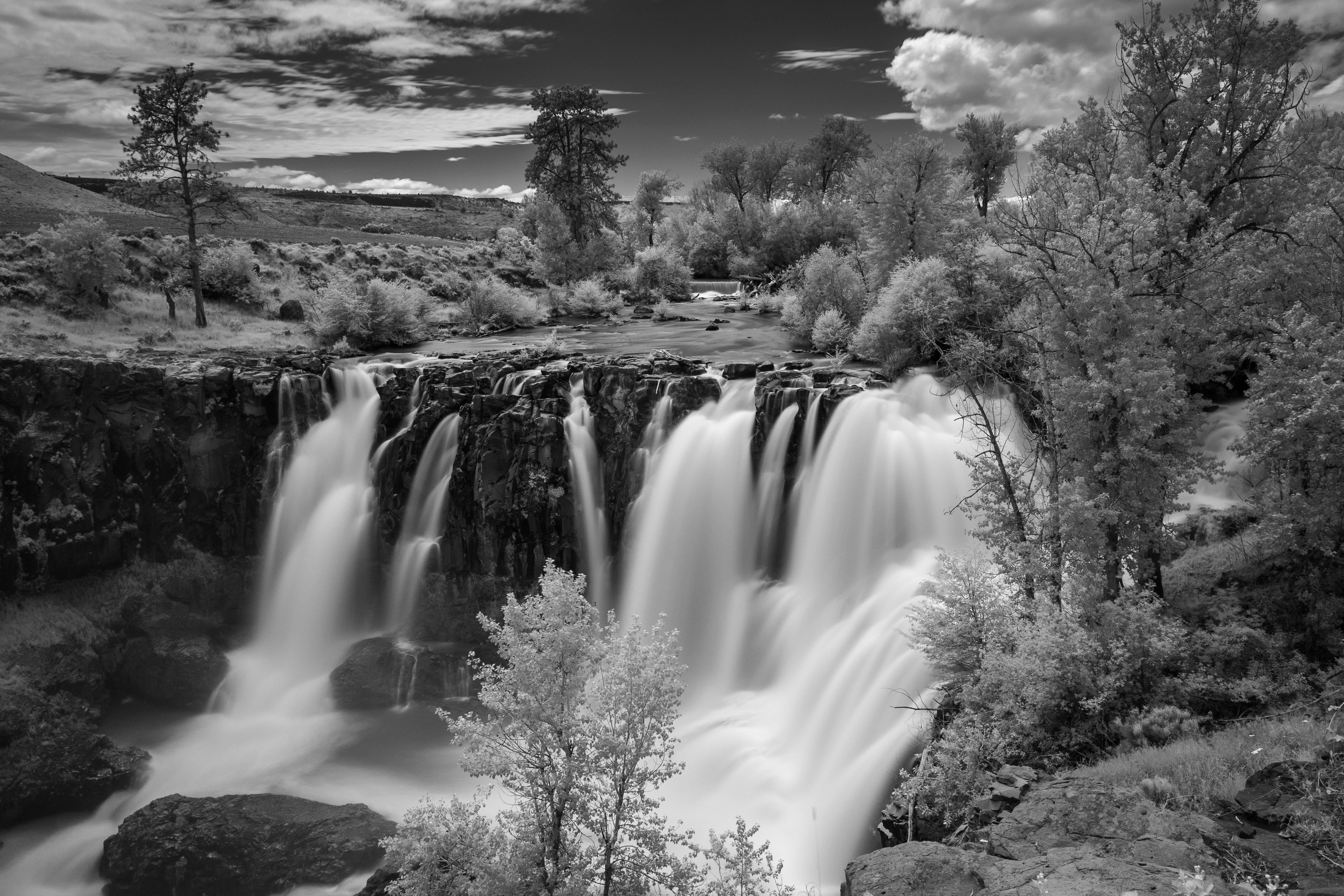 ite River Falls Central Oregon's White River Falls plunges 90' over a basalt shelf, testament to the violent geological forces that carved the region millions of years ago.