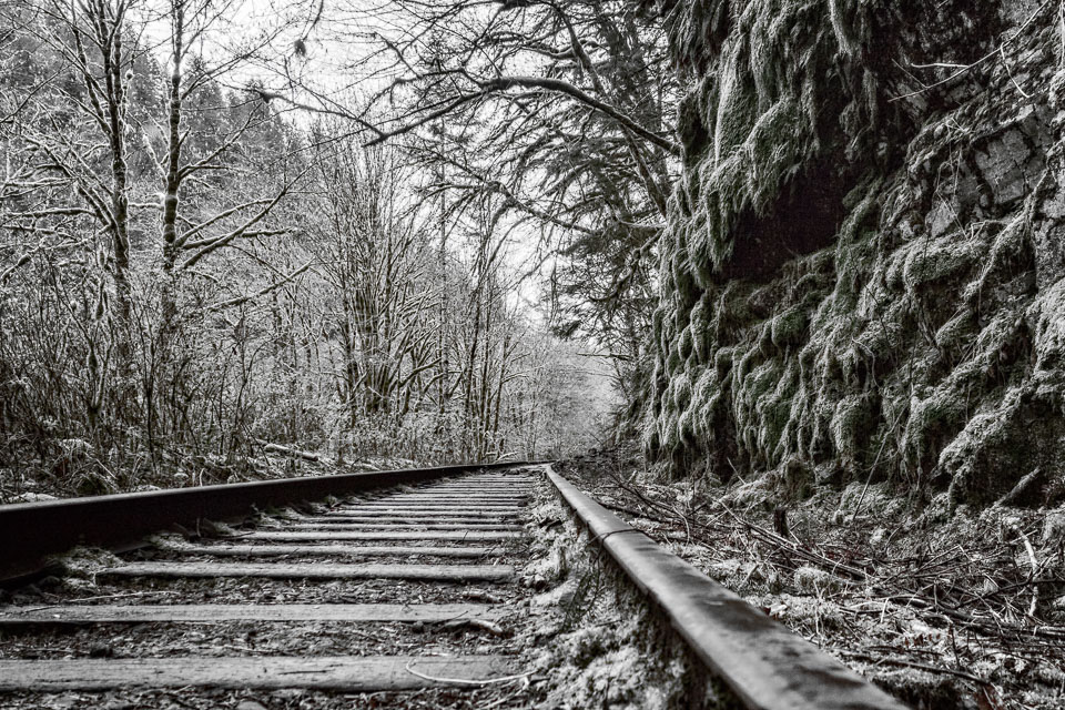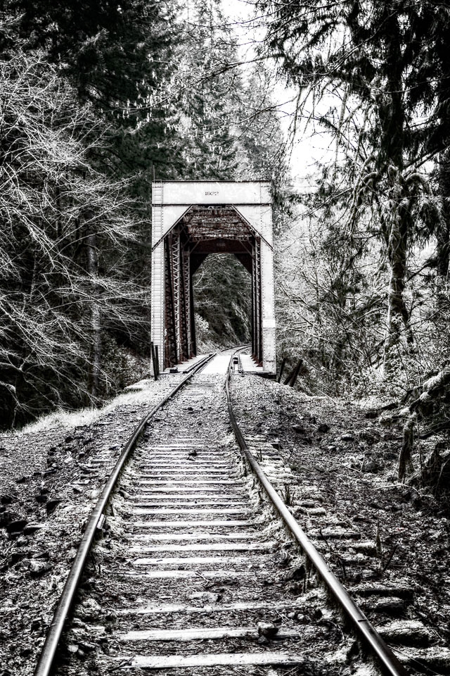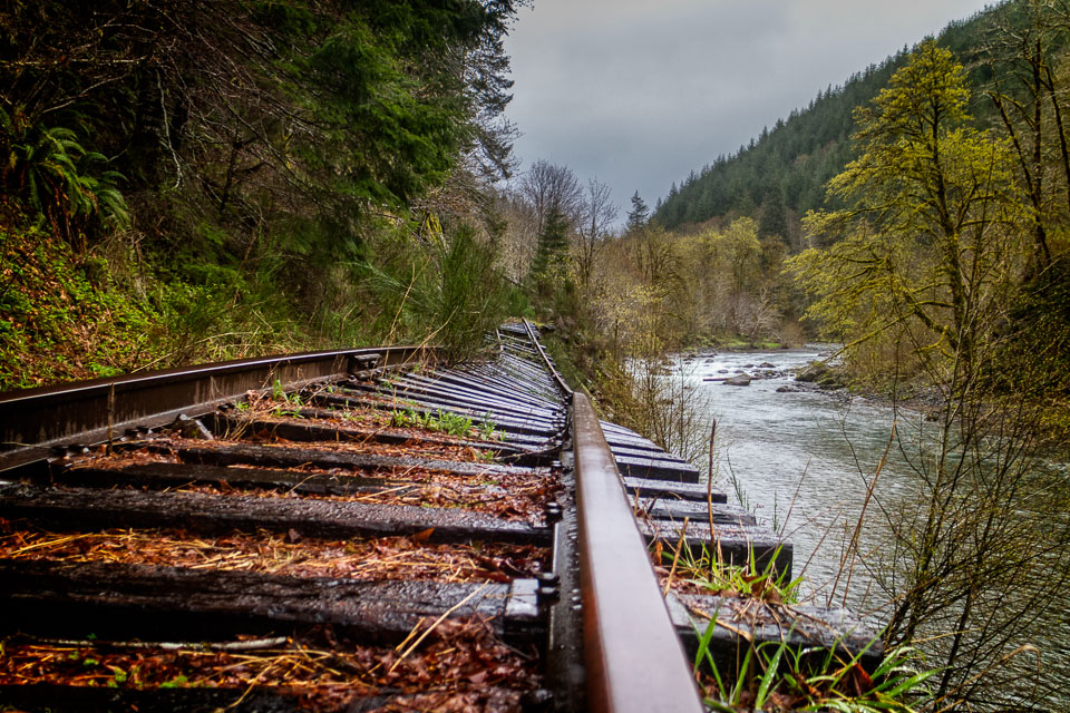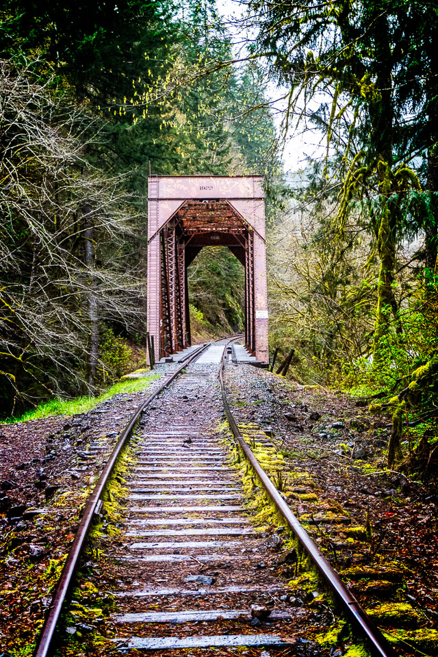 Port of Tillamook Bay Railroad's salmonberry river canyon line was destroyed during a storm in 2007. The line is slowly decaying and is a wonderful place to safely shoot old railroad tracks,
