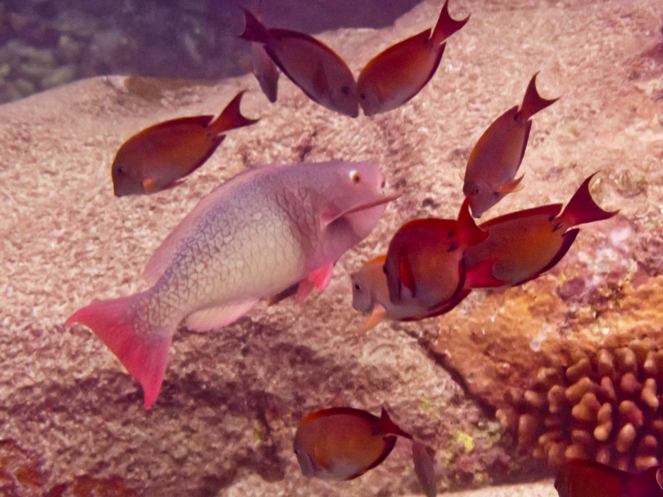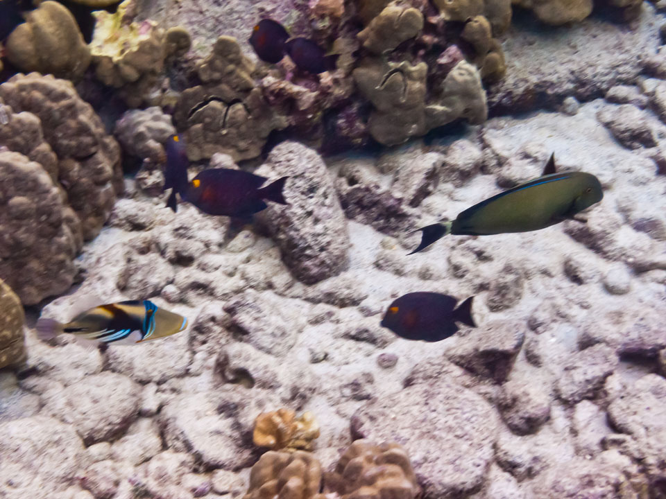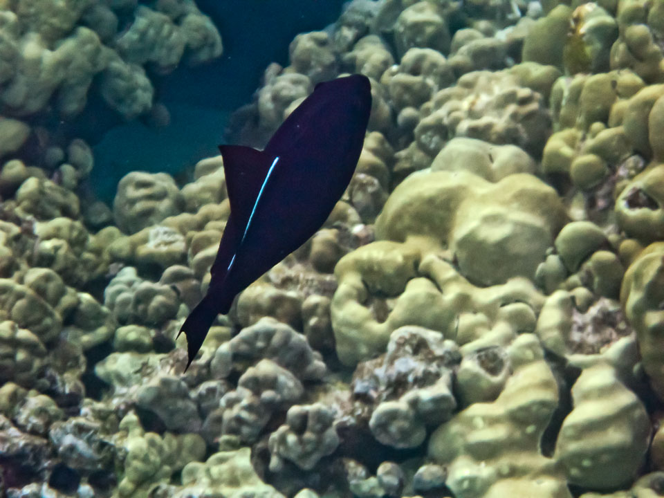 South Kona is shielded by the mountainous Maunaloa, making the waters on the southwest side of Hawaii’s Big Island calm and clear. A perfect example of this is at beautiful Honaunau Bay, also called Two-steps. “Two-steps” refers to a spot on the shoreline where the volcanic rock has been neatly worn away into a convenient “two-step” entry point for snorkelers and divers. Abundant fish and honu (Hawaiian green sea turtles) can be seen in Honaunau’s warm waters.