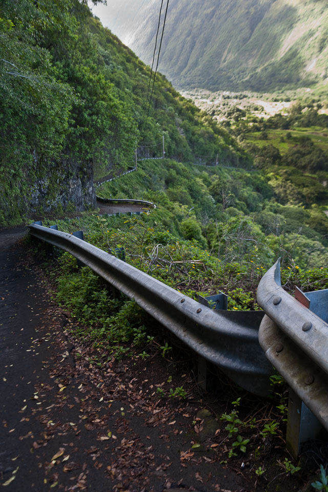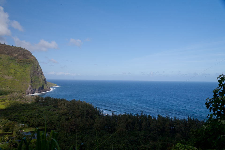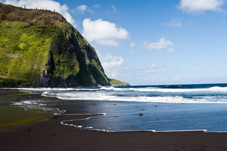 Waipiʻo Valley is a valley located in the Hamakua District of the Big Island of Hawaiʻi. "Waipiʻo" means "curved water" in the Hawaiian language. It was the capital and permanent residence of many early Hawaiian aliʻi (kings). The valley floor at sea level is almost 2,000 ft (610 m) below the surrounding terrain. A steep road leads down into the valley from a lookout point located on the top of the southern wall of the valley. The road gains 800 vertical feet (243.84 m) in 0.6 miles (0.9 km) at a 25% average grade, with steeper grades in sections. This is a paved public road but it is open only to 4 wheel drive vehicles. It is the steepest road of its length in the United States and possibly the world. The valley floor below the cliff is littered with crumpled cars that lost conrtol on the road. The shore line in the valley is a black sand beach, popular with surfers. A few taro farms are located in the valley. Several large waterfalls fall into the valley to feed the river which flows from the foot of the largest falls at the back of the valley out to the ocean.