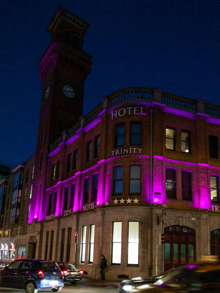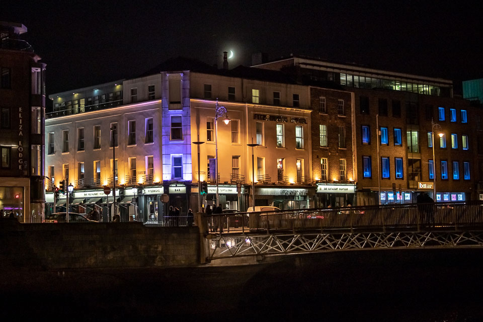 River Liffey at night, Dublin, Ireland. Taken on October 14, 2018. Filename: 20181014-IMG_7016