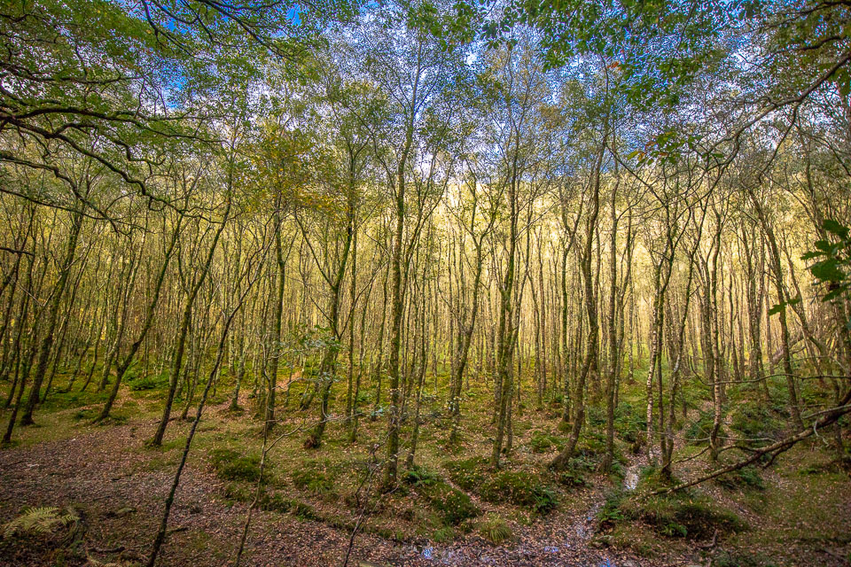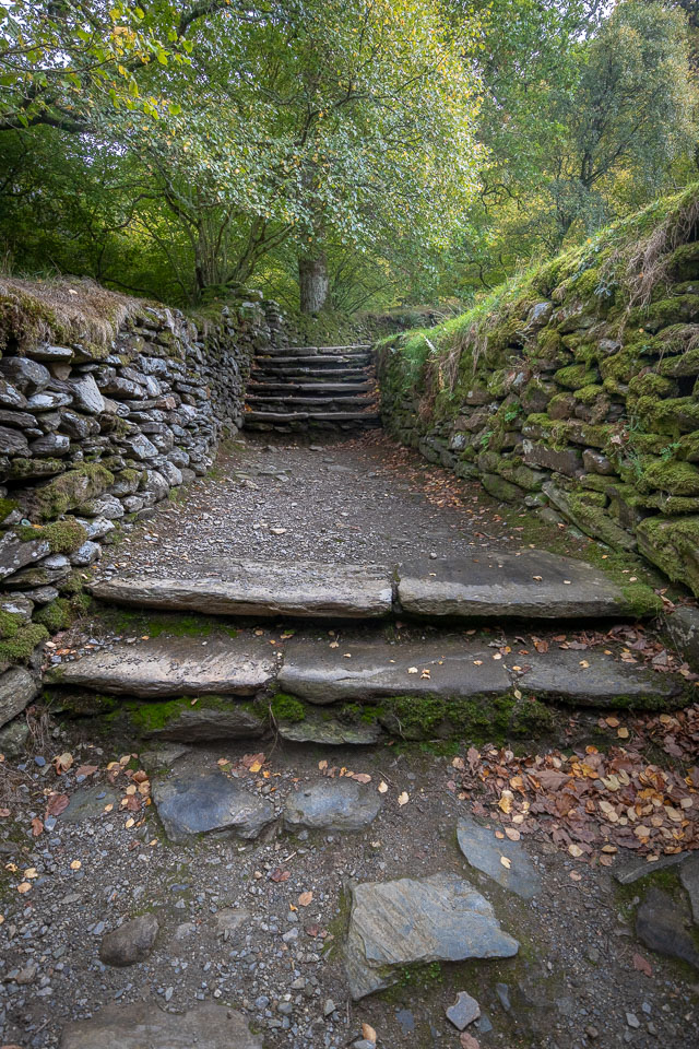 The trail we took (The Spinc trail, the white dots on this map ) climbs up and around the upper lake. The trail first goes though the ruins of Reefert church then climbs steeply up by the Poulanass Waterfall before joining a boardwalk. More than 600 wooden steps lead you to a viewing point overlooking the Upper Lake. A 3 mike long boardwalk skirts the top of the cliffs before descending through blanket bog and heath into the picturesque Glenealo Valley, home to a large herd of deer. A rough track then leads you back down into Glendalough Valley.