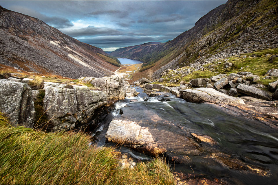Glendalough ((ɡlɛndəˈlɒx, Irish: Gleann Dá Loch, meaning "Valley of two lakes") is a glacial valley in County Wicklow, Ireland, renowned for an Early Medieval monastic settlement founded in the 6th century by St Kevin.