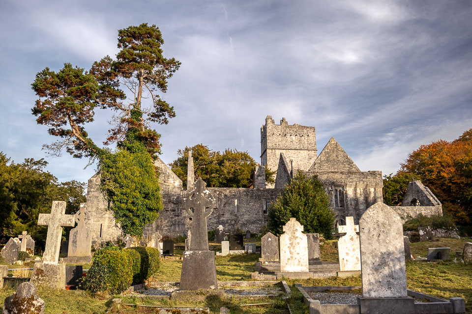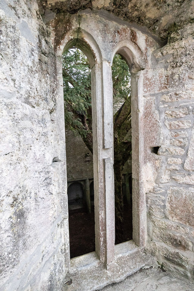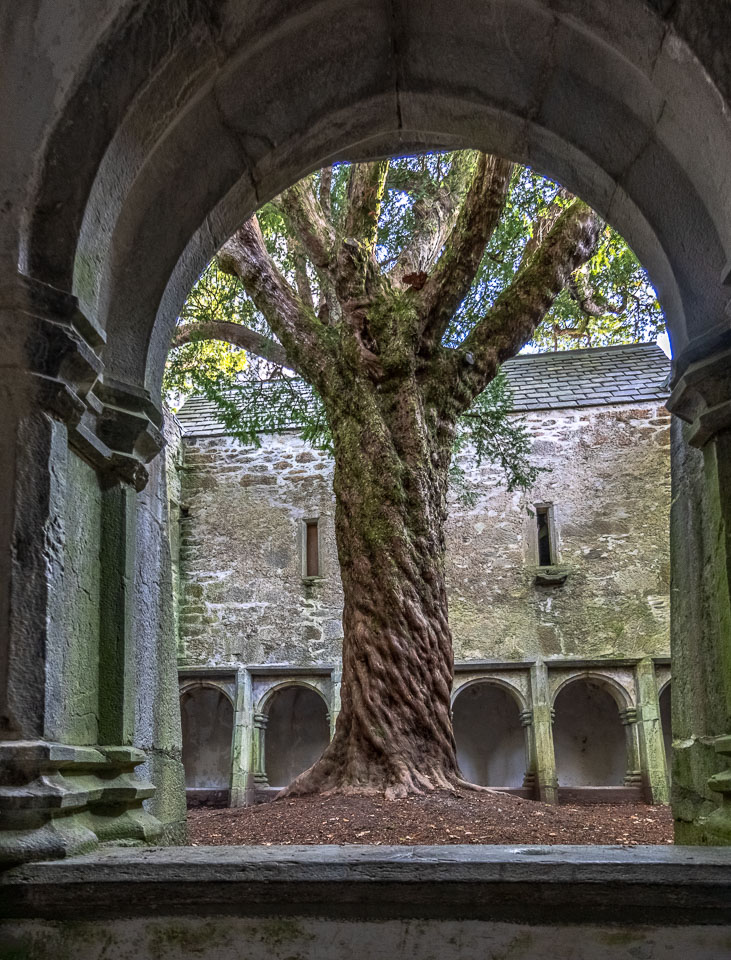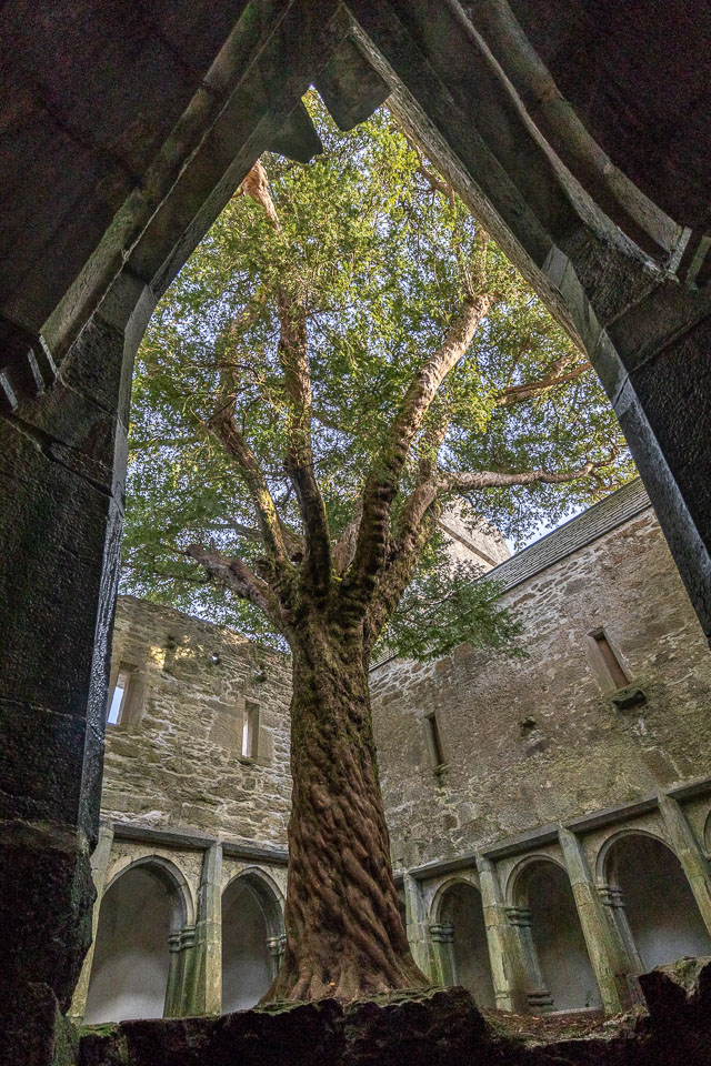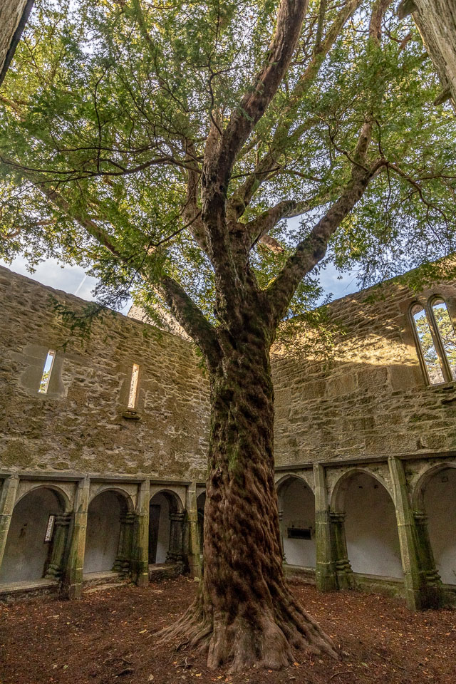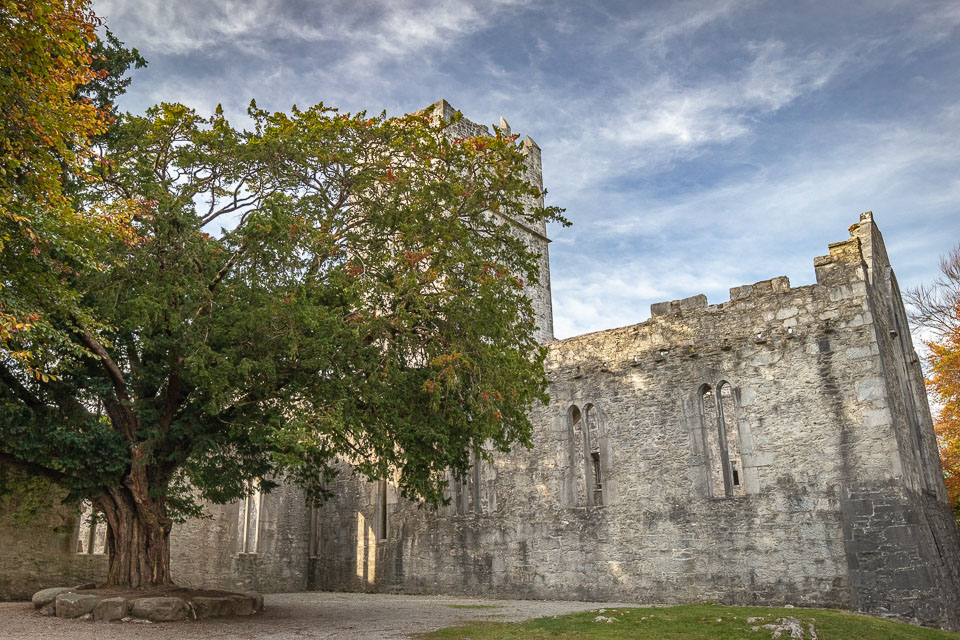 Muckross Abbey (Irish: Mainistir Locha Léin and Mainistir Mhucrois) is one of the major ecclesiastical sites found in the Killarney National Park. It was founded in 1448 as a Franciscan friary for the Observantine Franciscans. It has had a violent history and has been damaged and reconstructed many times. Today the abbey is largely roofless although, apart from this, is generally quite well preserved. Its most striking feature is a central courtyard, which contains a large yew tree and is surrounded by a vaulted cloister.