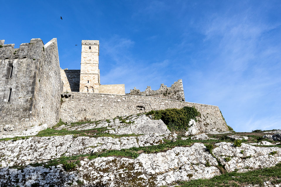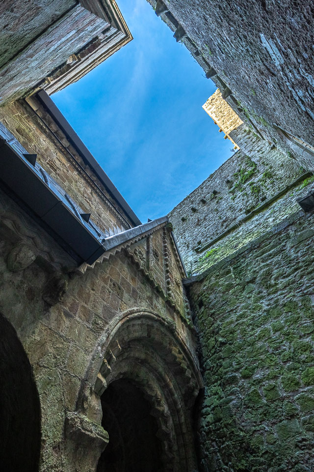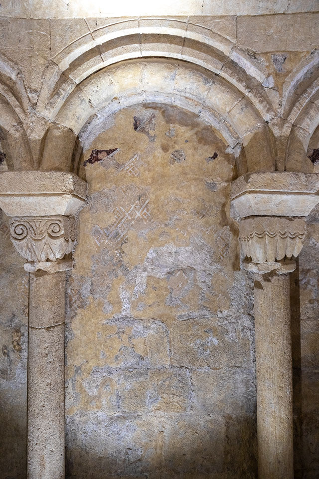 Cormac's Chapel, the chapel of King Cormac Mac Carthaigh, was begun in 1127 and consecrated in 1134. It is a sophisticated structure, with vaulted ceilings and wide arches, drawing on contemporary European architecture and infusing unique native elements. The Irish Abbot of Regensburg, Dirmicius of Regensburg, sent two of his carpenters to help in the work and the twin towers on either side of the junction of the nave and chancel are strongly suggestive of their Germanic influence, as this feature is otherwise unknown in Ireland. Other notable features of the building include interior and exterior arcading, a barrel-vaulted roof, a carved tympanum over both doorways, the magnificent north doorway and chancel arch. It contains one of the best-preserved Irish frescoes from this time period. The Chapel was constructed primarily of sandstone which has become waterlogged over the centuries, significantly damaging the interior frescoes. Restoration and preservation required the chapel be completely enclosed in a rain-proof structure with interior dehumidifiers to dry out the stone. It has been completely cleaned and restored.