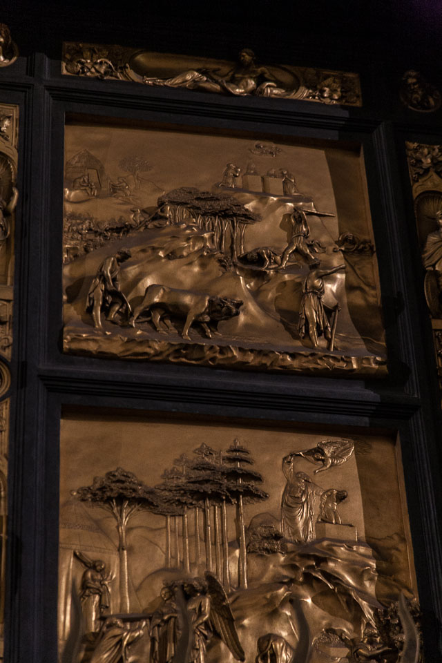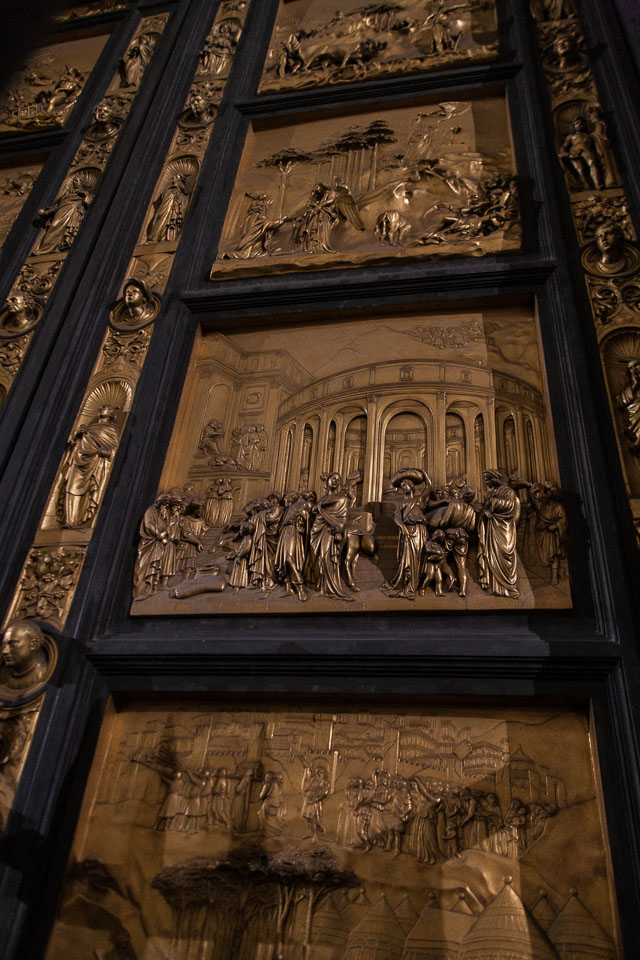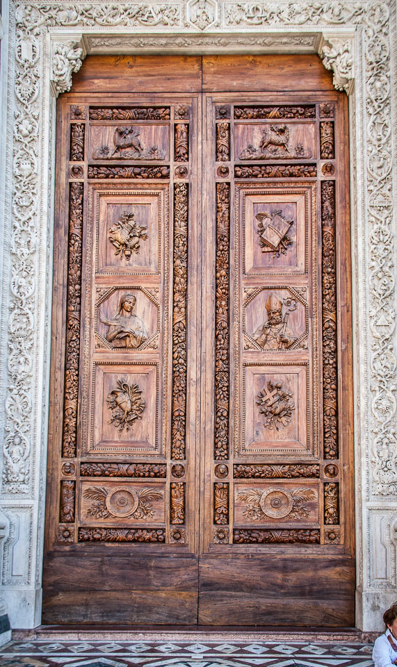 There are three doors in this collection that are bronze, not wood. The doors of the Catherdral of Amalfi cast in Constantinople in 1066, Ghiberti's doors to the Baptistry in Florence which are quite literally considered to be the doorways to the Renaissance. The third is the relativly boring and door of the Siena Catherdal cast in 1946. All these are noted in the captions (a scavenger hunt for you).