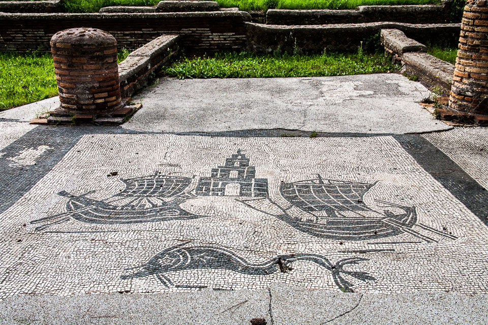Built sometime in the 4th century BCE, Ostia was the primary port for both commercial and naval shipping for the Republic and Empire, until Portus was constructed in the 1st century CE. A complete town, with it's own forums, temples and theater, it was also full of warehouses for storing goods transitioning between land and sea transport. After Portus became the primary port faciluty, Ostia transitioned into more of a resort town and transhipper of luxury items. The shifting course of the Tiber both flooded the cit repeatedly and moved the seafront and river shore away from Ostia. By the 9th century CE, the town was abanodoned. Repeated flooding covered everything with layers of preserving silt. The town was excavated in the late 1930s.