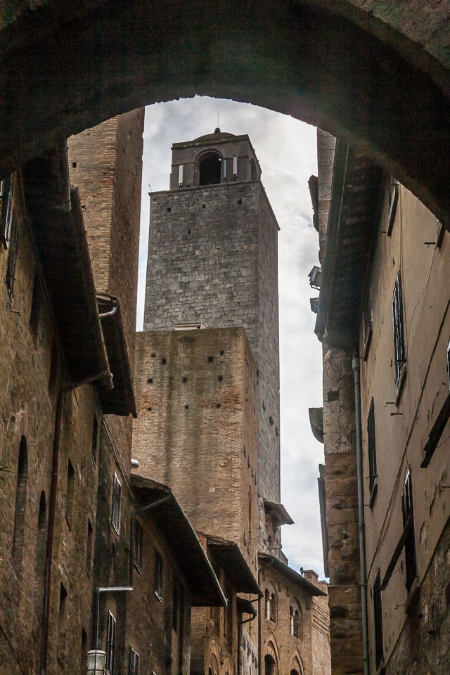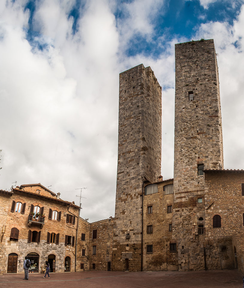 A medieval hill town that time forgot, San Gimingiano had, in its heyday, 72 towers, each built by a family for defense against their neighbors. The plagues of the 14th century killed half the population. Devastated economically, it then fell under the rule of Florence. The towers were ordered to be destroyed. Fortunately, fourteen still stand. The town never did recover, and therefore remained trapped in time, architecturally.