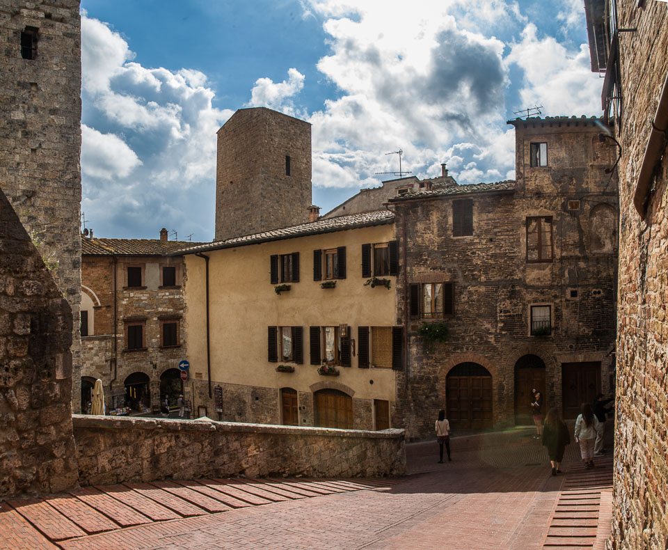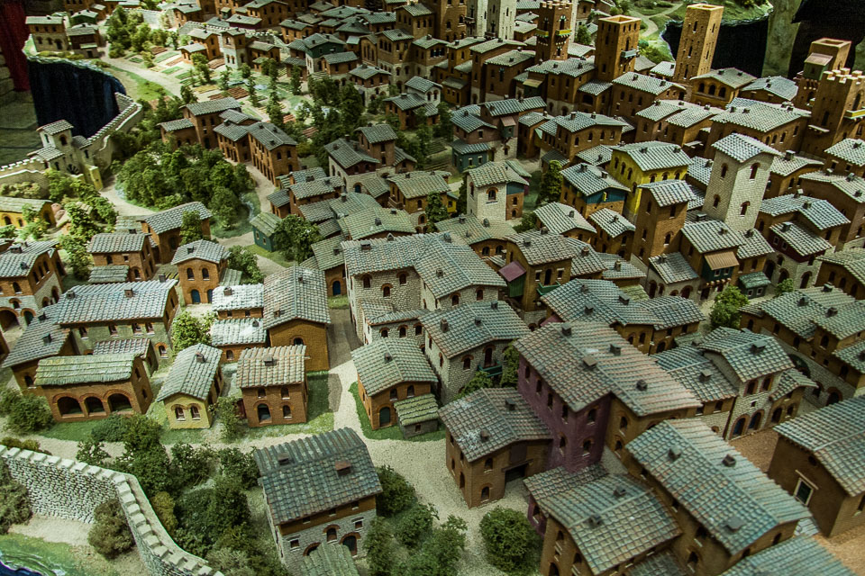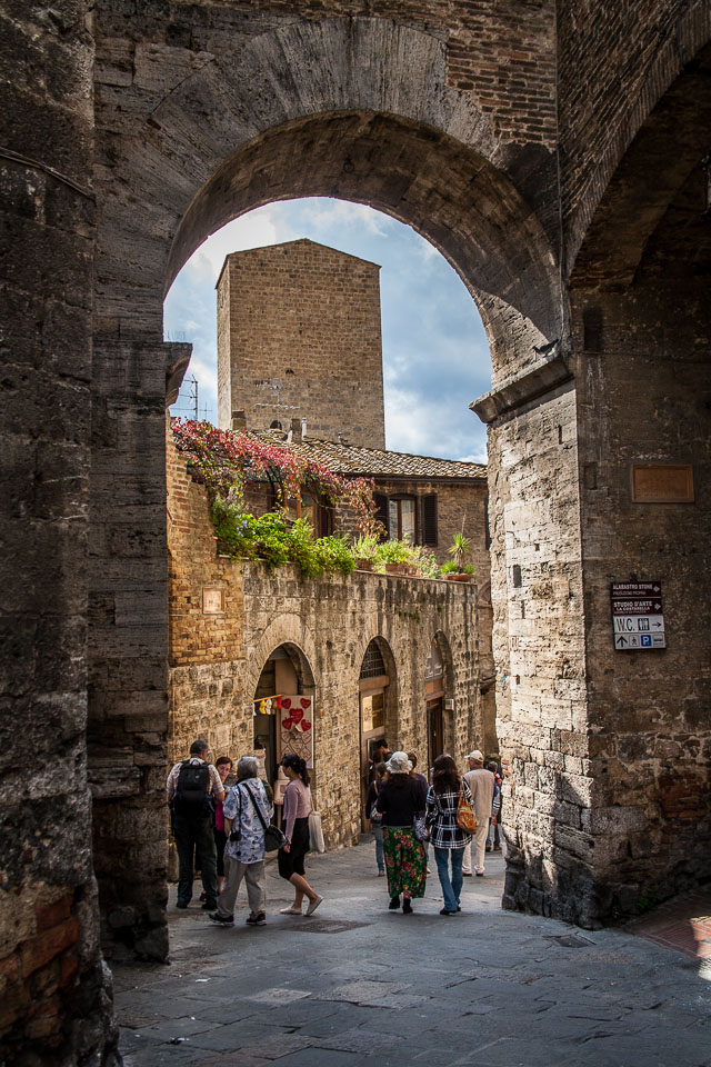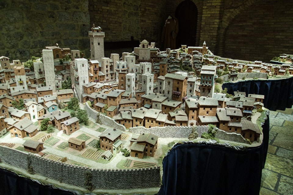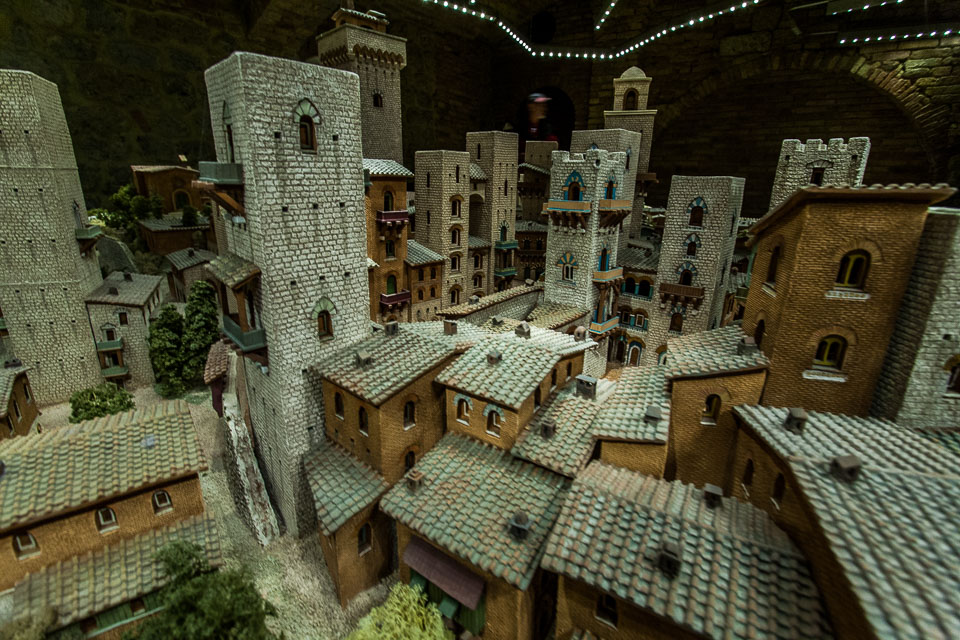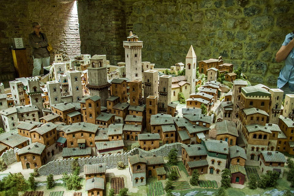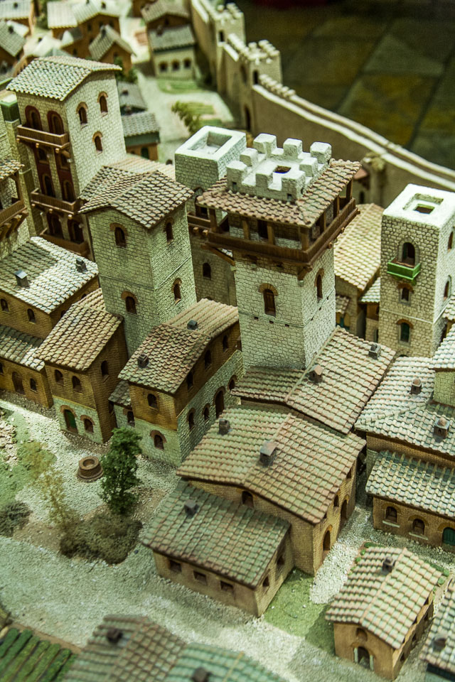 Today it's a tourist trap. Nothing is made here, and nothing much new develops in this little town. Unless it relates to extracting euros from visitors, such as the torture museum (not shown) and the miniature model of the town as it was in the twelfth century. With the picturesque towers and commanding view of the Tuscan countryside It's a mighty interesting and pretty trap though!