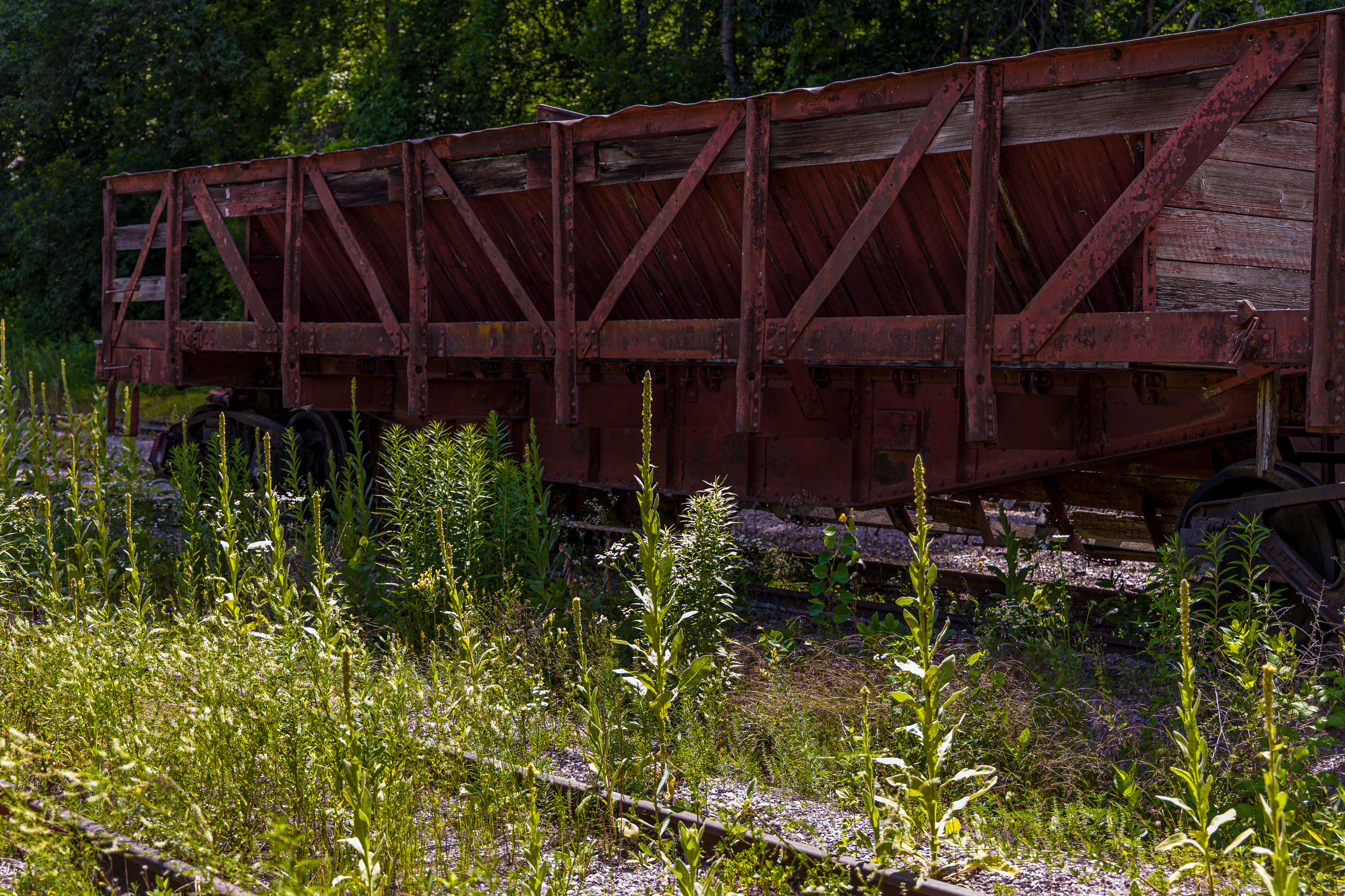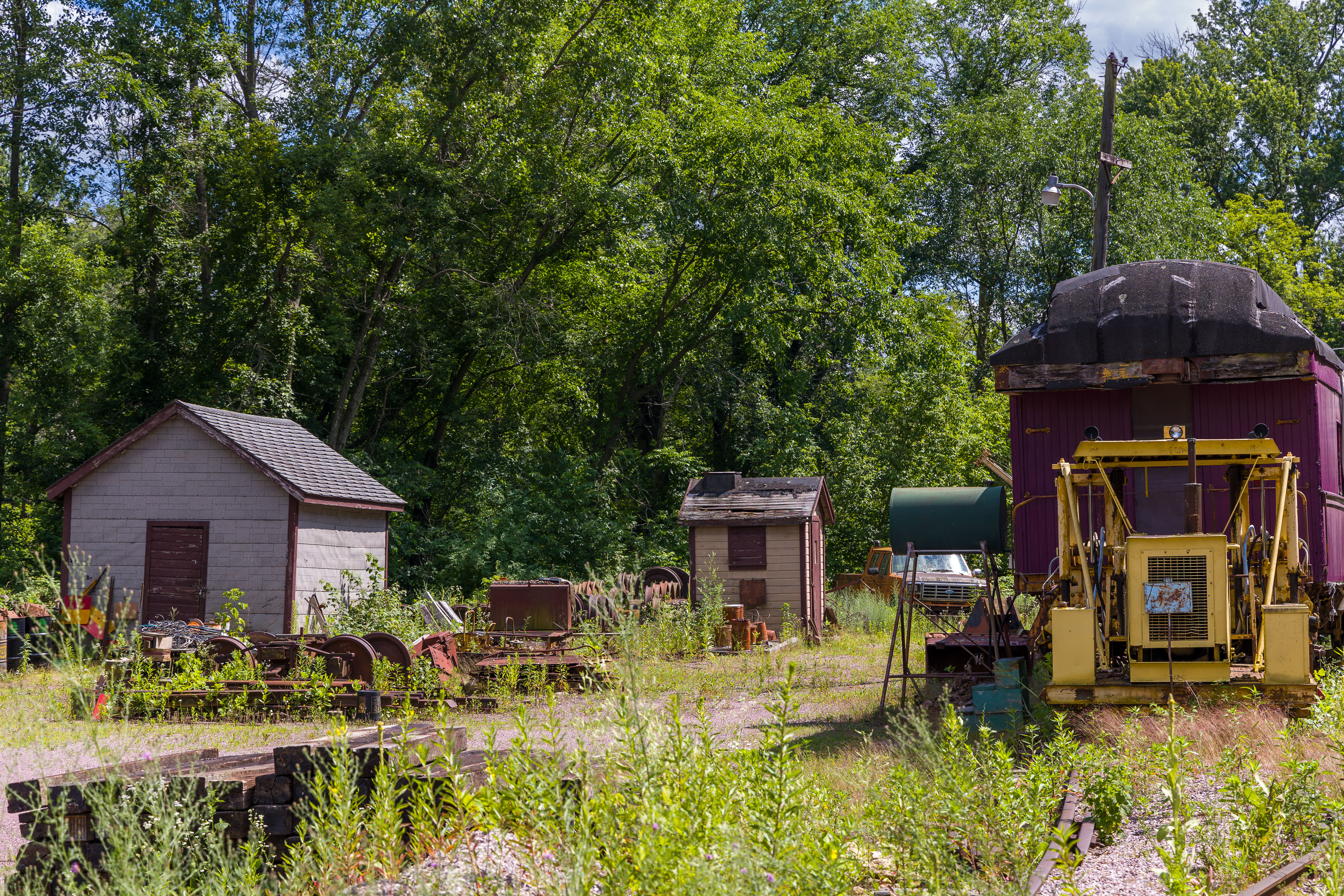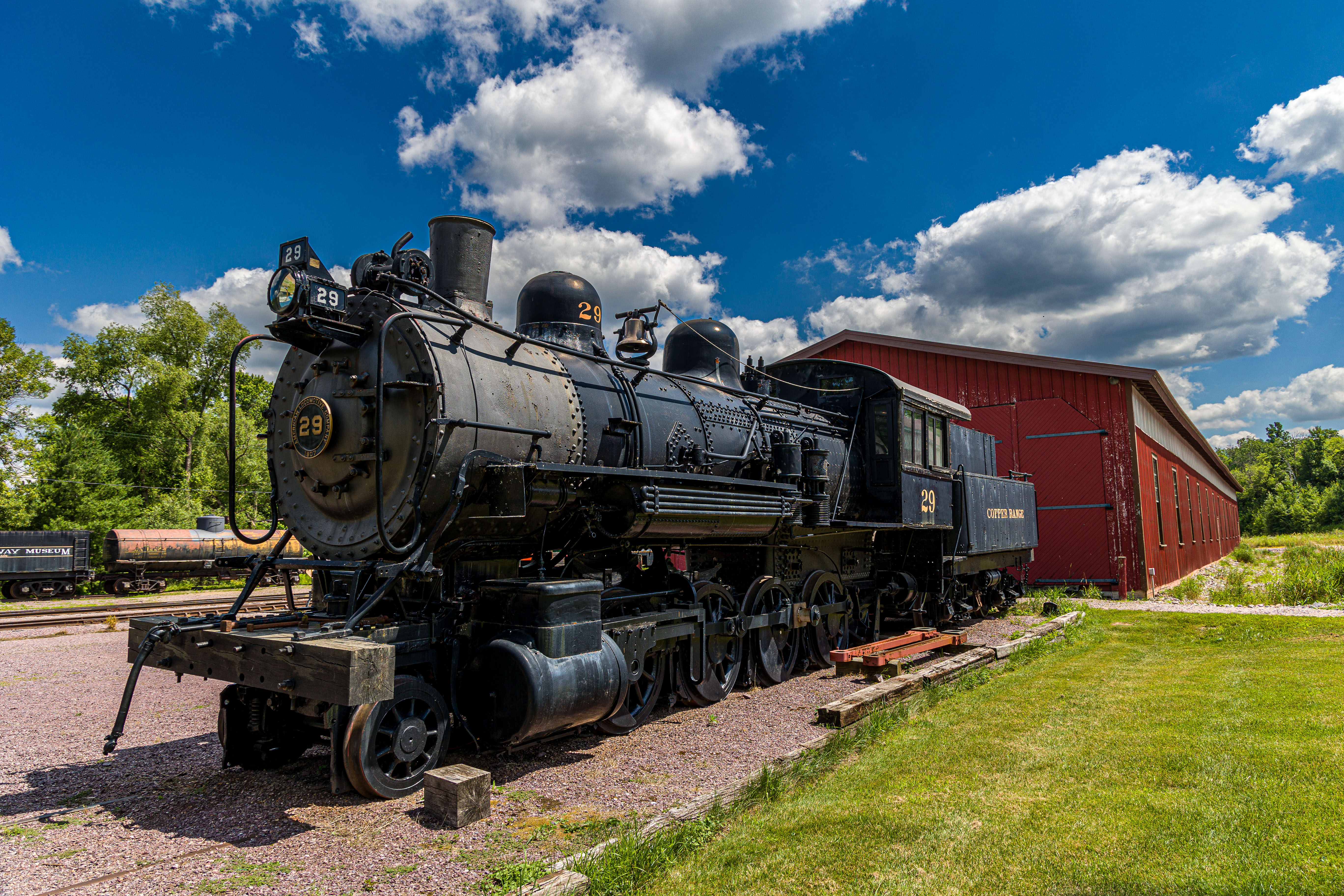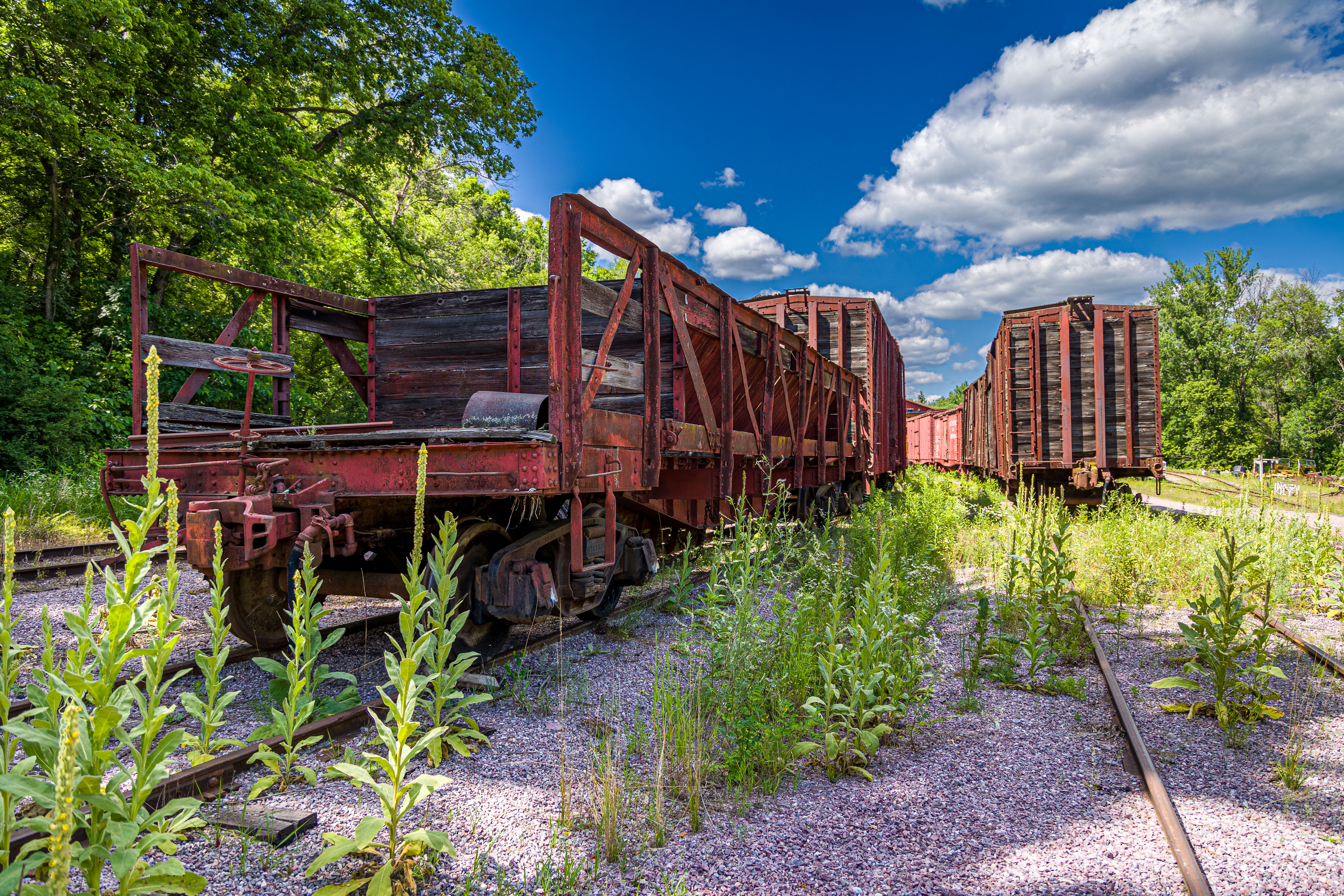 The Mid-Continent Railway Museum's collection emphasizes the preservation of railroad items operated in the upper Midwest from the period of 1880–1916, what the organization refers to as the "Golden Age of Railroading" The museum has 13 steam and 7 diesel locomotives and over 100 other pieces of rolling stock. The museum has the largest collection of wooden passenger cars in the United States as well as being home to five of only six surviving wooden boxcars built by the Mather Stock Car Company and the nation's last surviving fish car, Wisconsin Fish Commission "Badger Car #2" Many of these shots are from wandering around "the boneyard" of decommissioned engines and rolling stock in various states of disrepair and salvage.