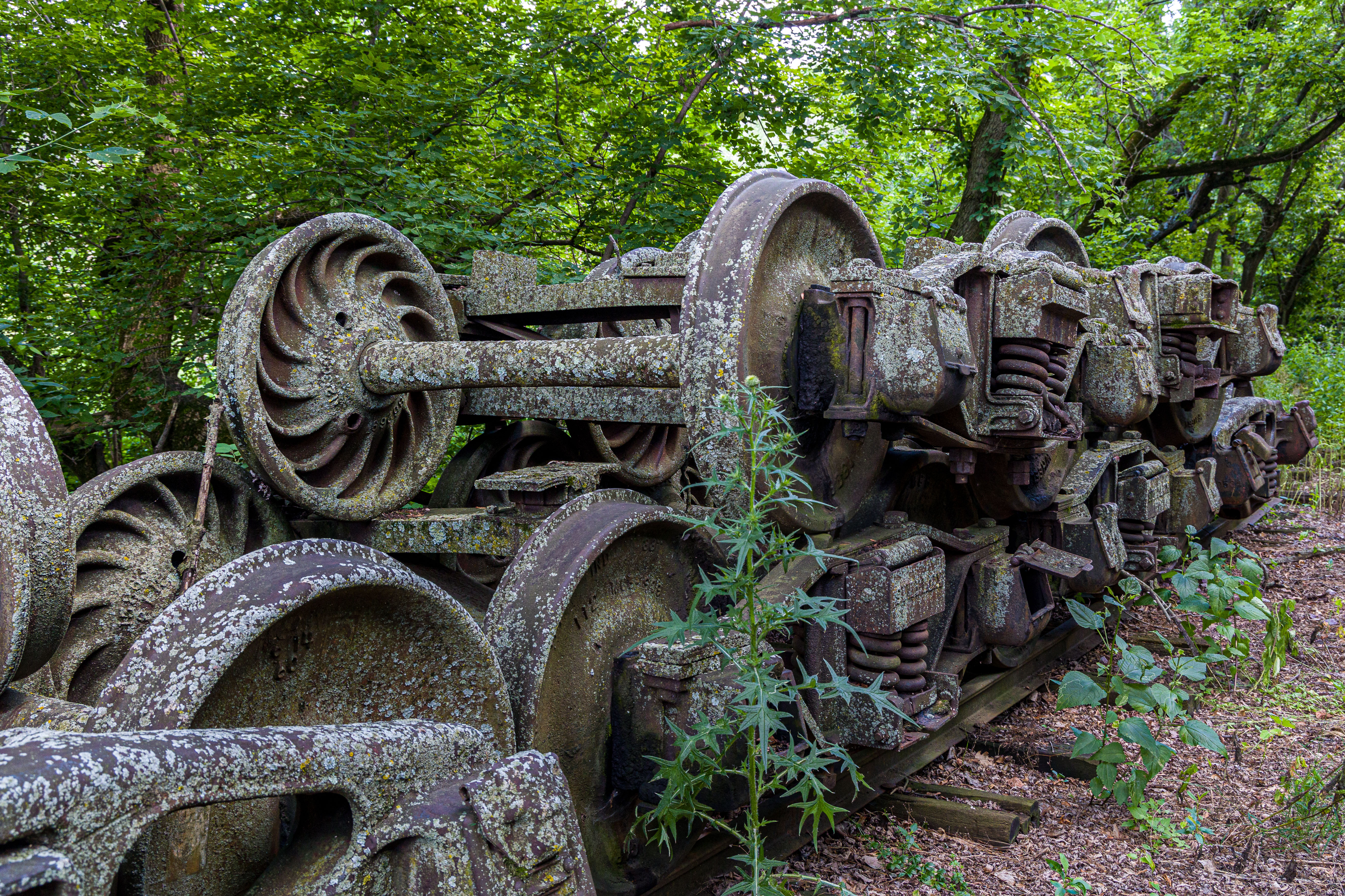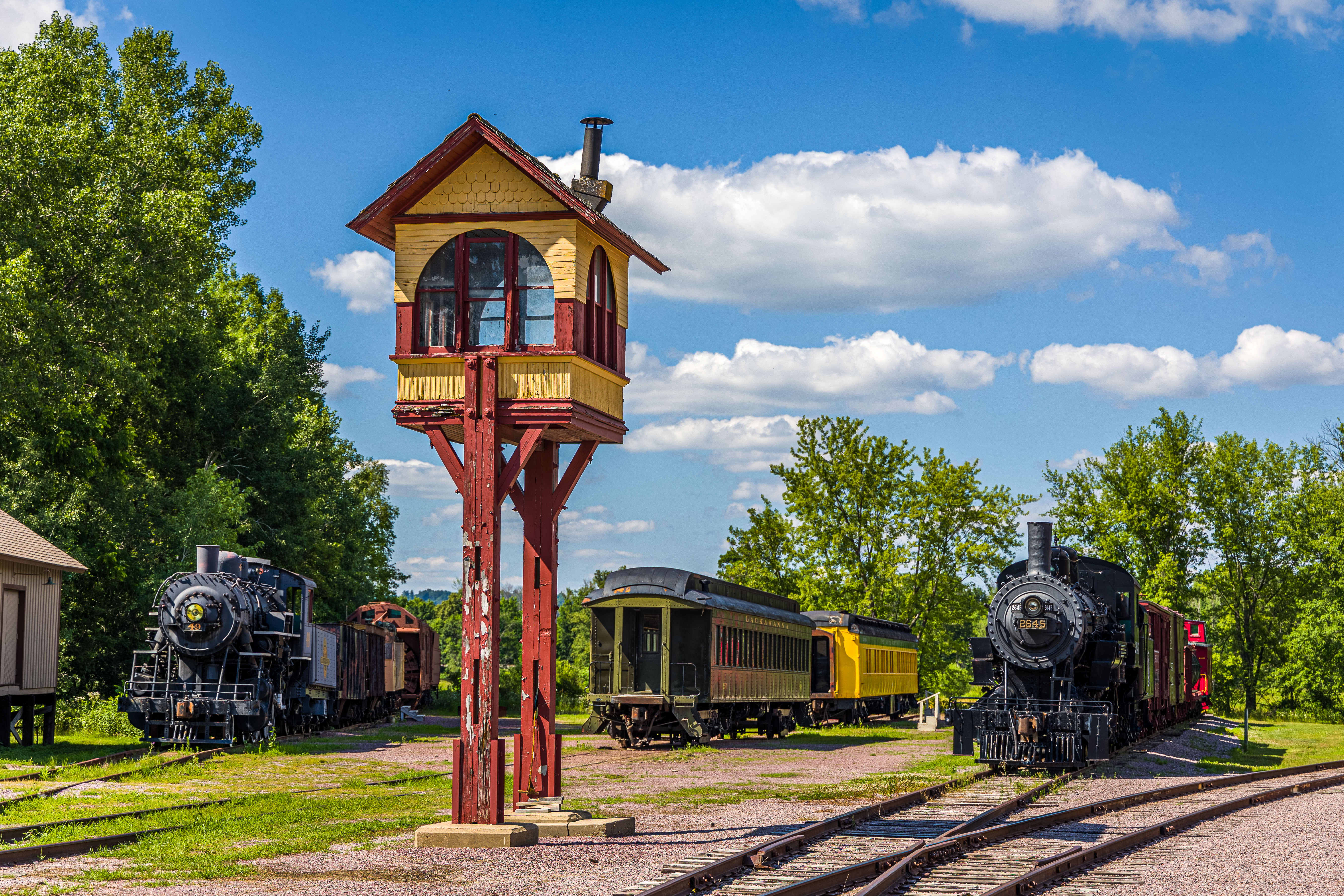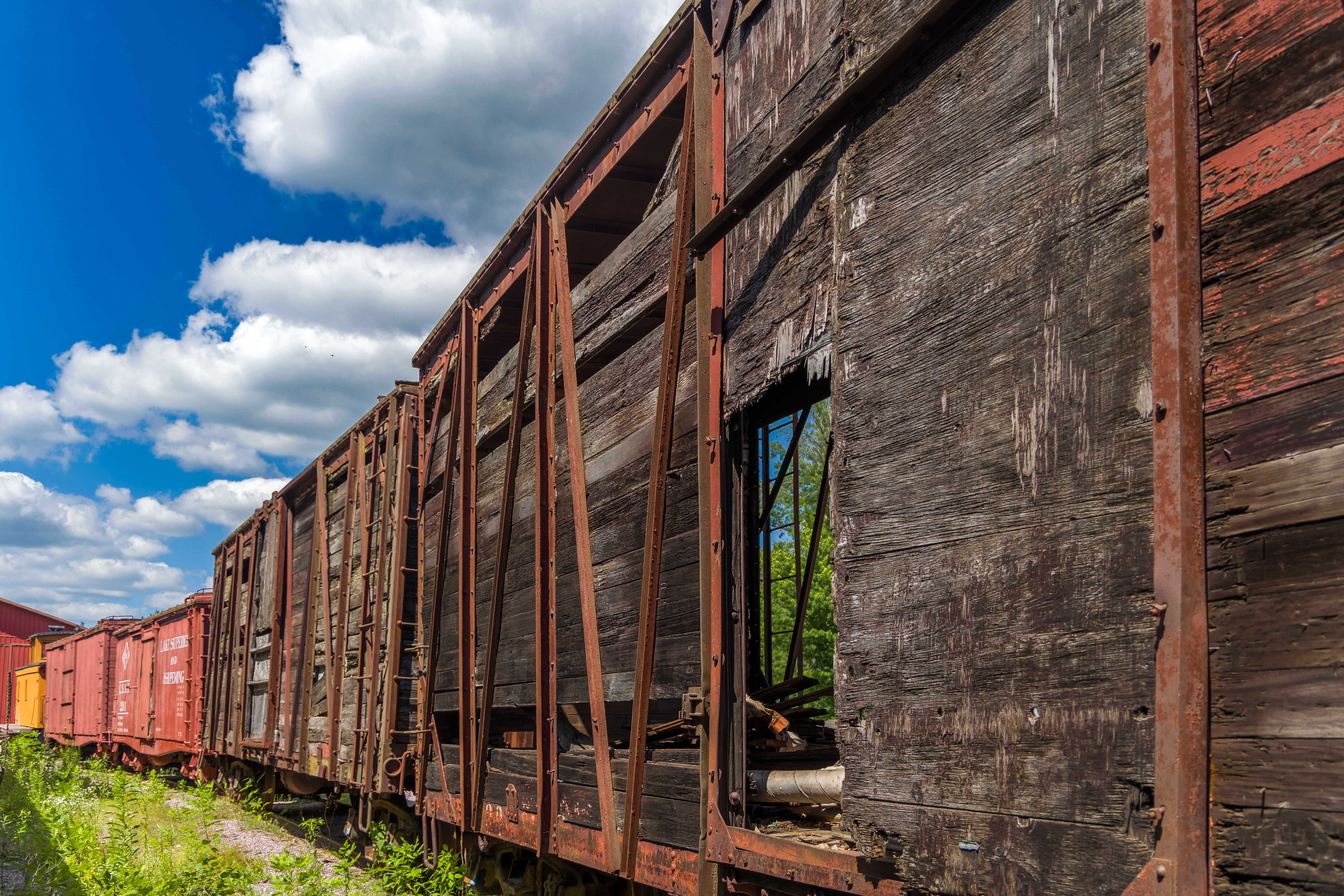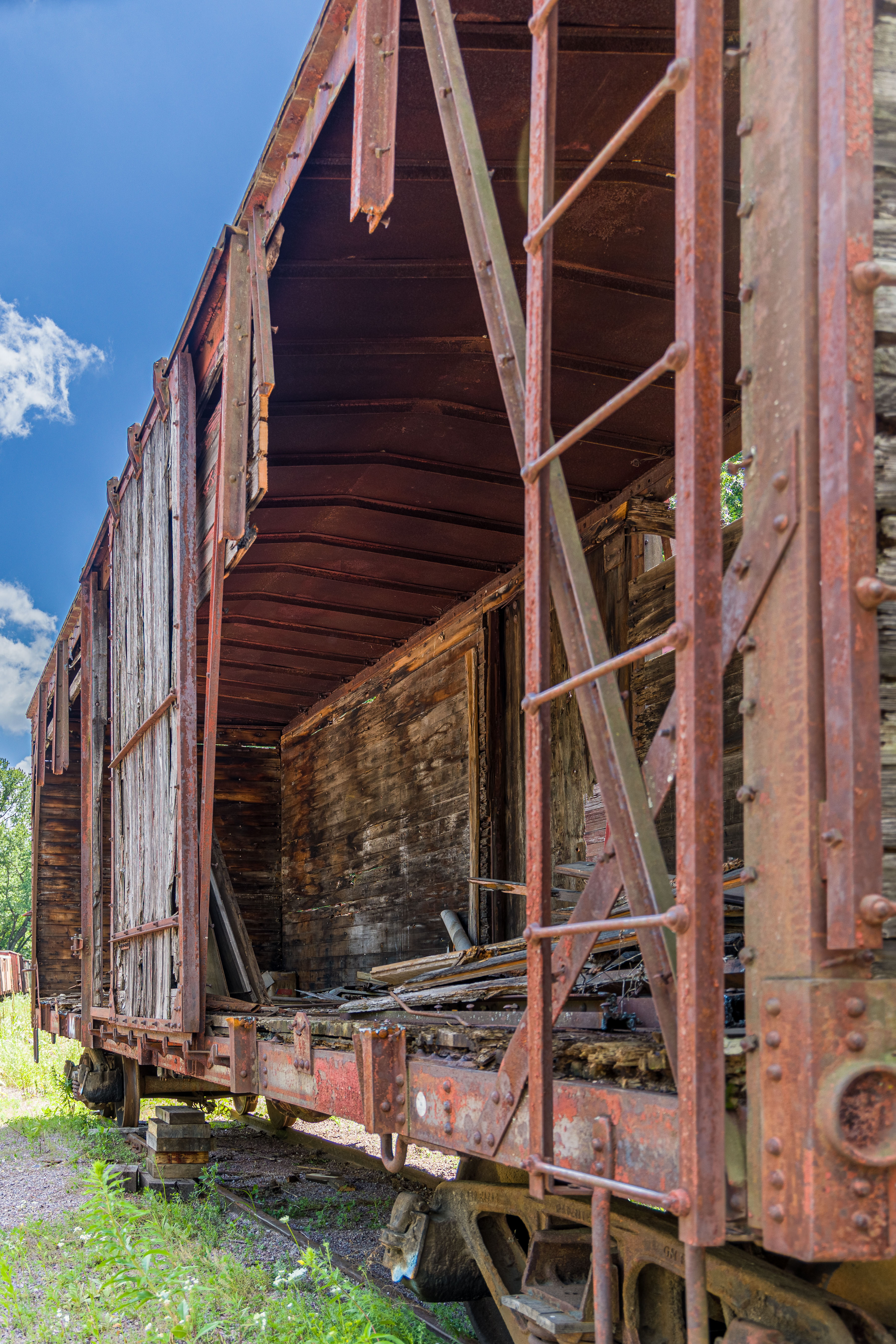 The Mid-Continent Railway Museum's collection emphasizes the preservation of railroad items operated in the upper Midwest from the period of 1880–1916, what the organization refers to as the "Golden Age of Railroading" The museum has 13 steam and 7 diesel locomotives and over 100 other pieces of rolling stock. The museum has the largest collection of wooden passenger cars in the United States as well as being home to five of only six surviving wooden boxcars built by the Mather Stock Car Company and the nation's last surviving fish car, Wisconsin Fish Commission "Badger Car #2" Many of these shots are from wandering around "the boneyard" of decommissioned engines and rolling stock in various states of disrepair and salvage.