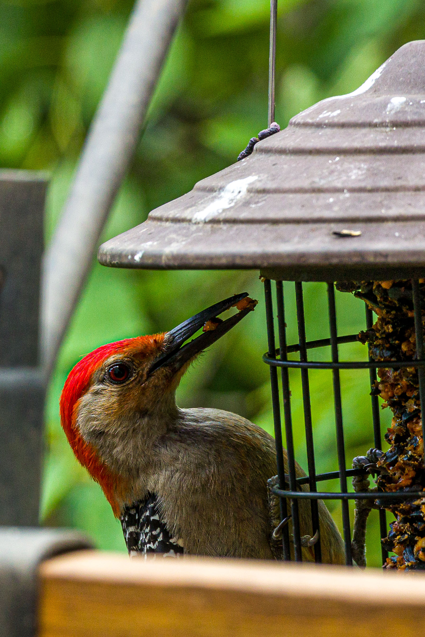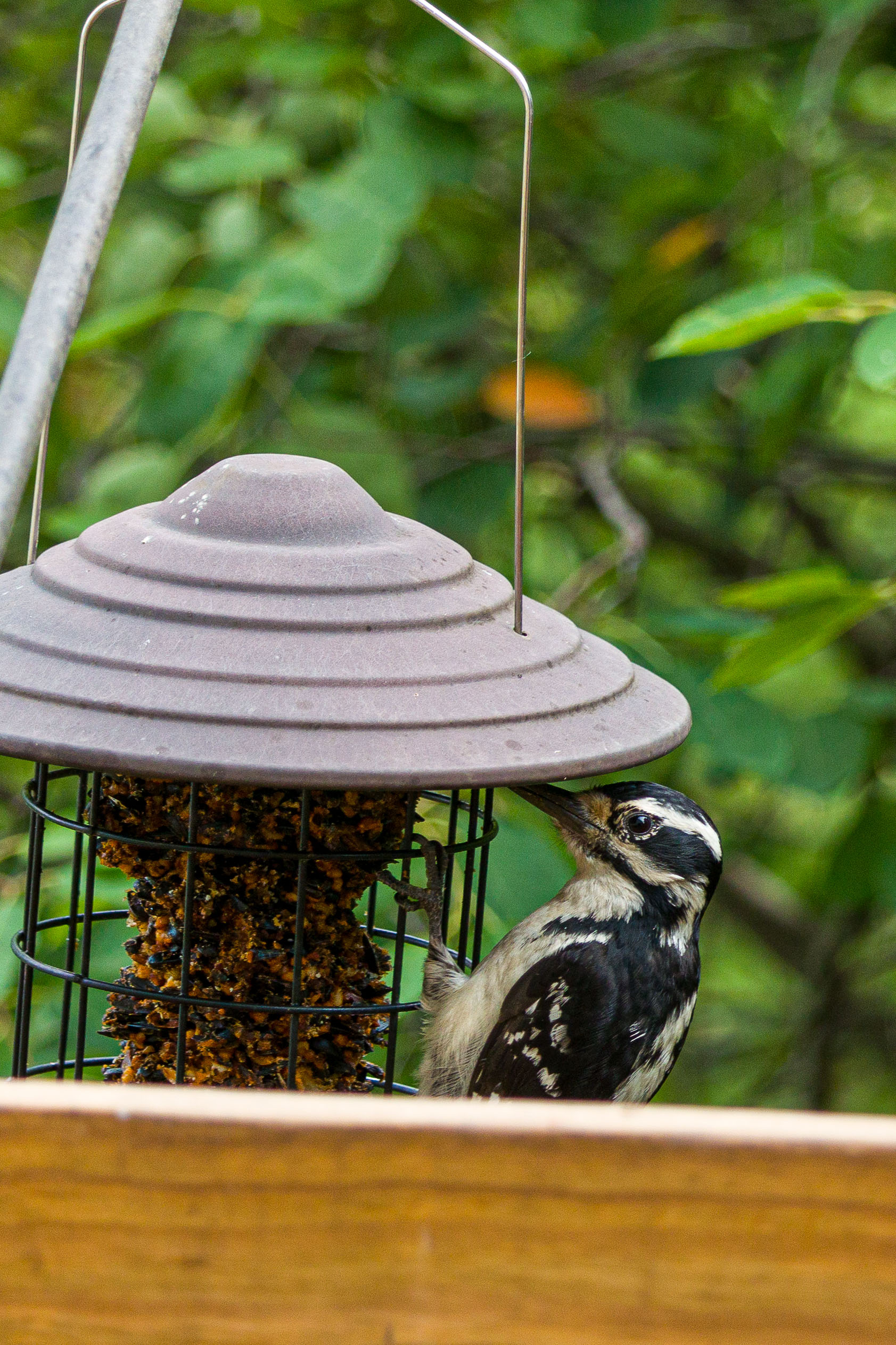 My mother's birdfeeders, right outside the dining room table. Just leave the camera handy...