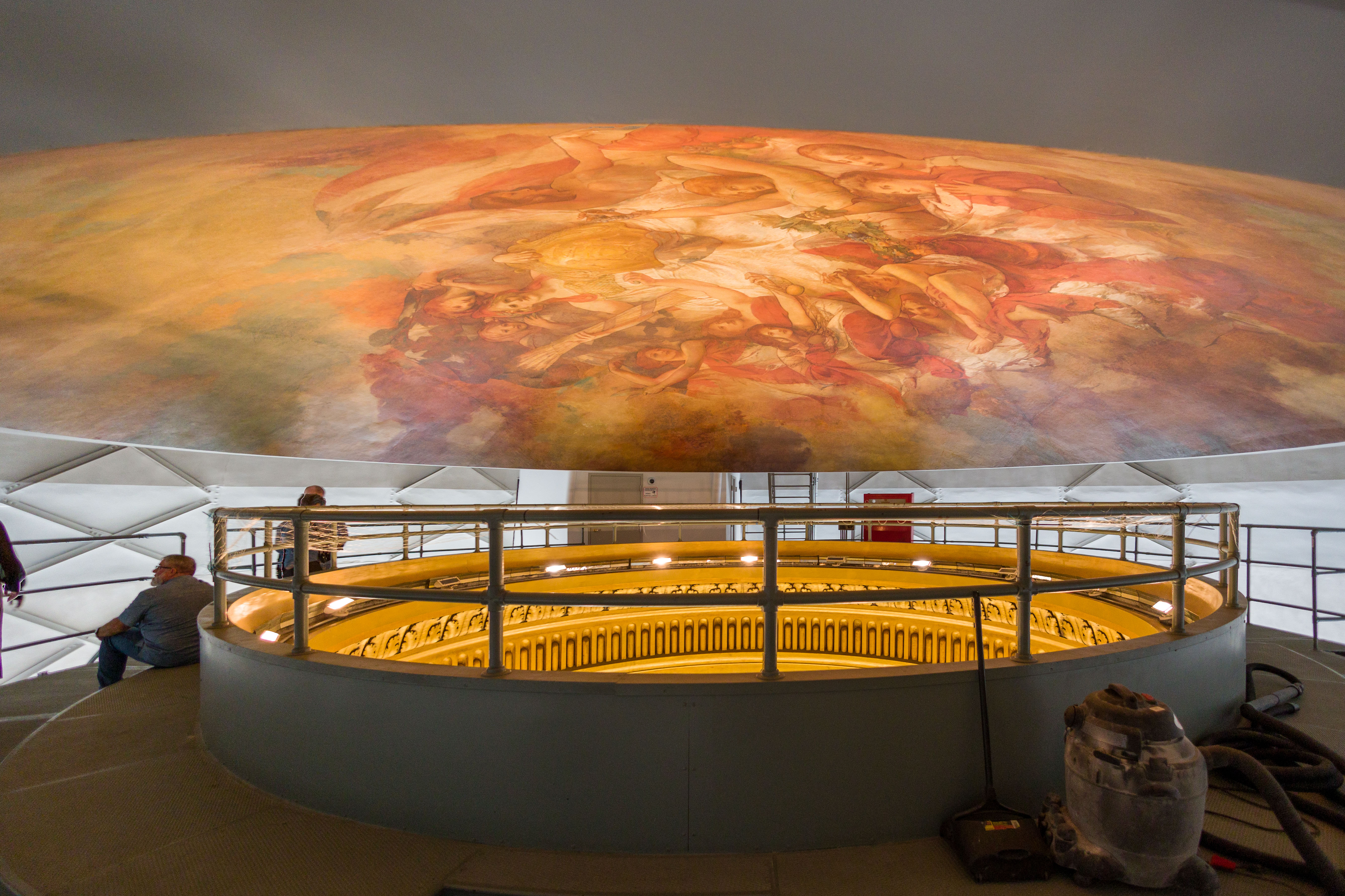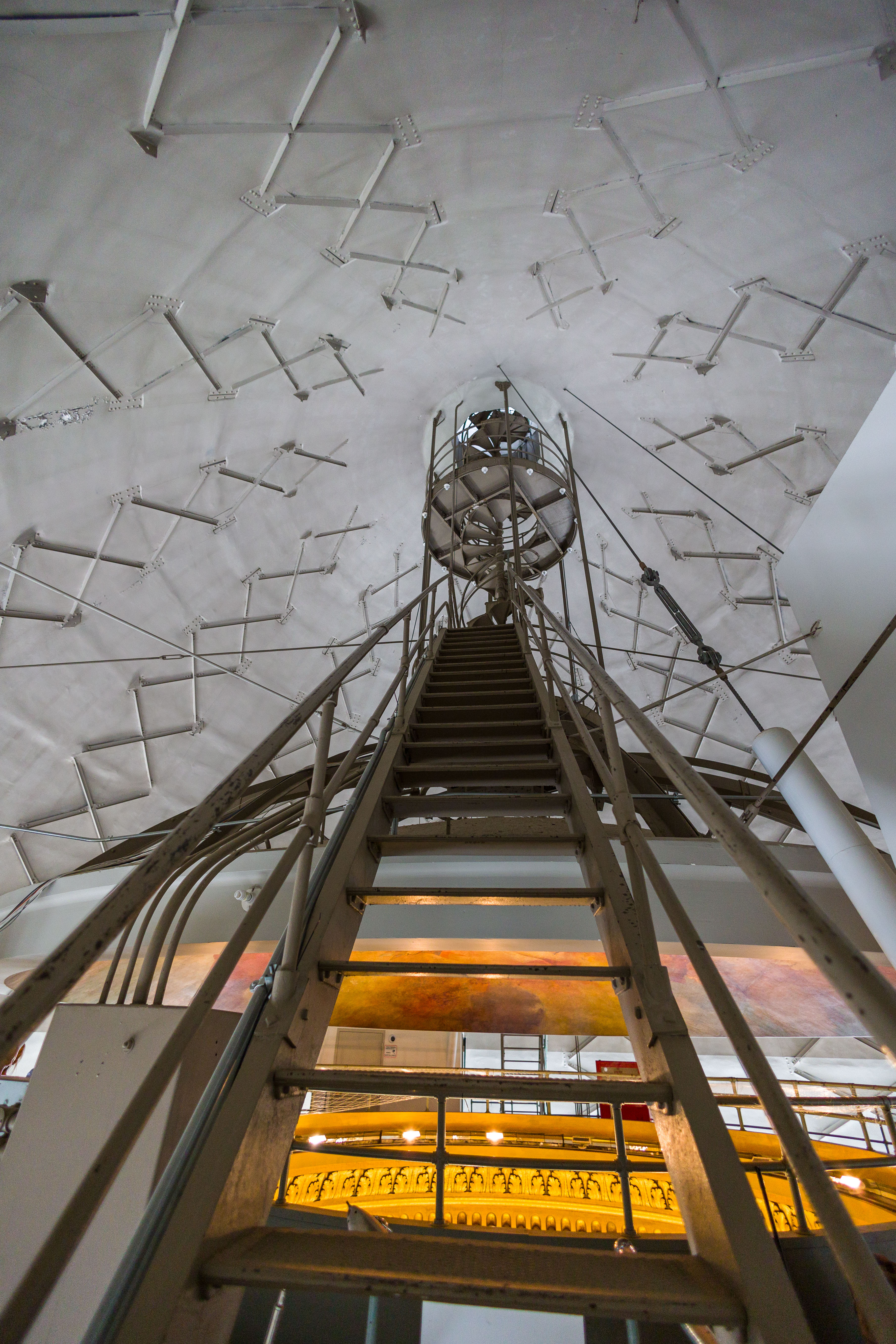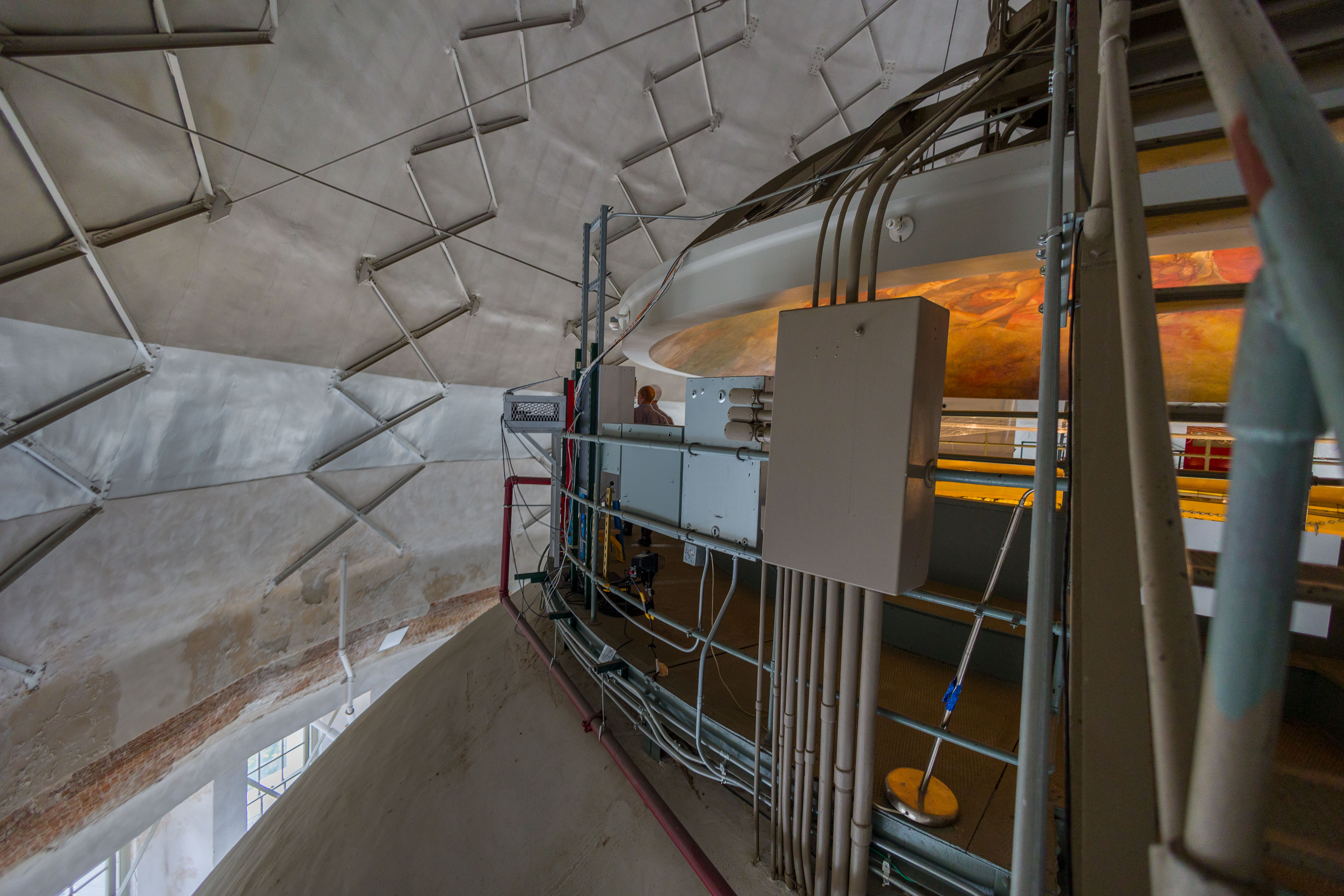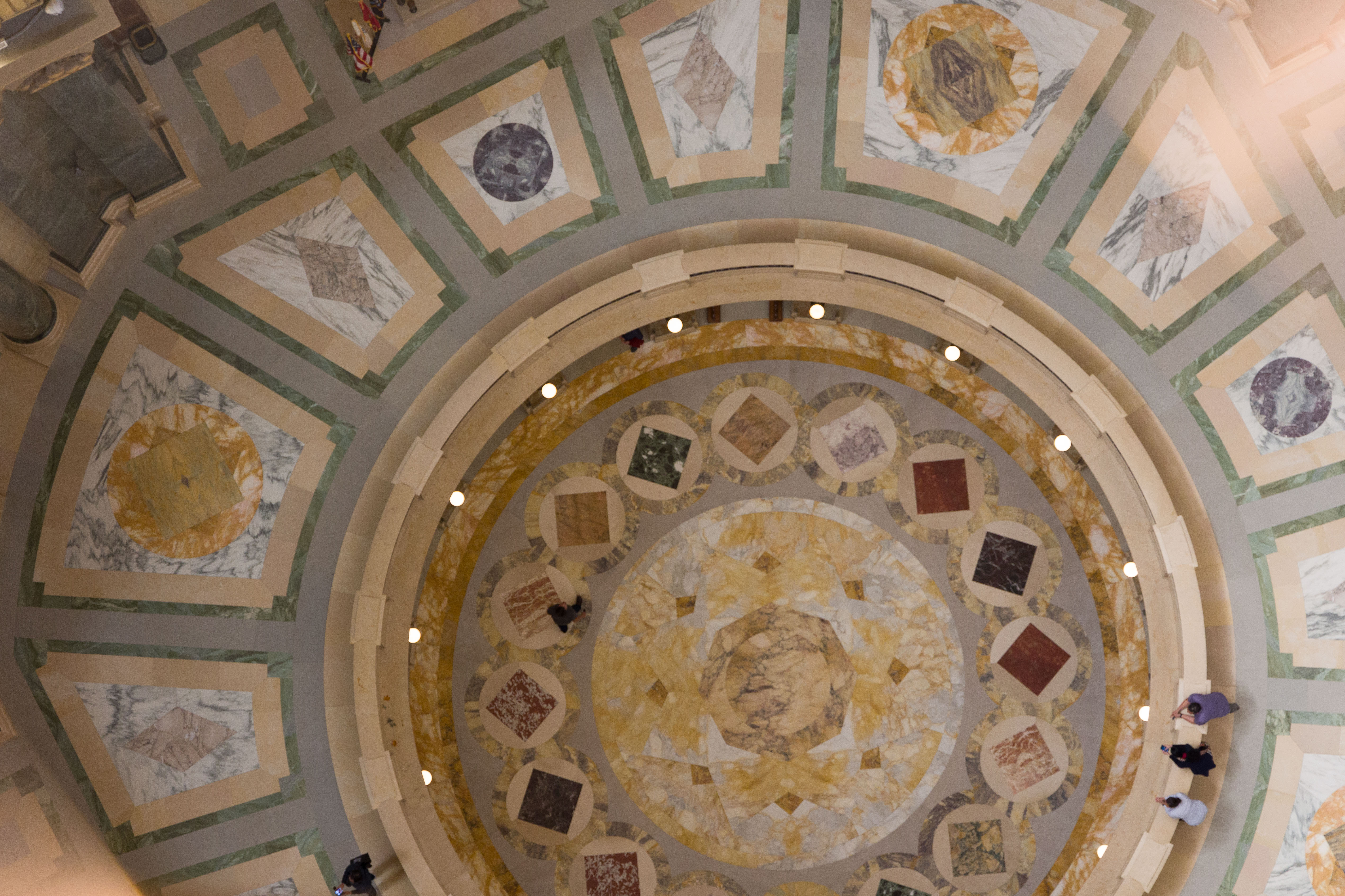 Photos from within the Capitol building, including a tour to the the very top levels (which closed to public tours in 1931). Includes panoramam from the top observation decks and view from inside the lantern at the very top around the inner dome mural and between the inner and outer domes (facades).