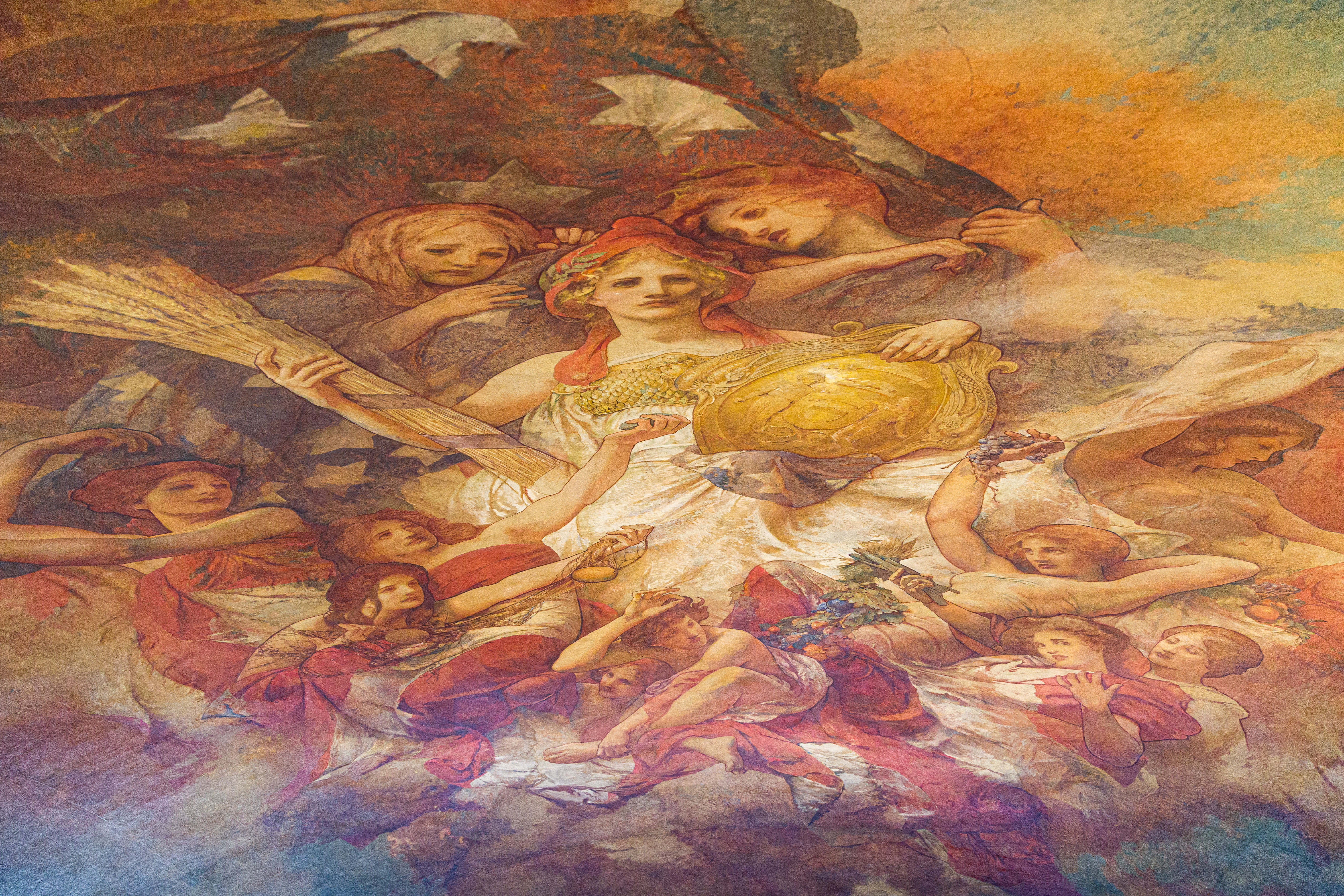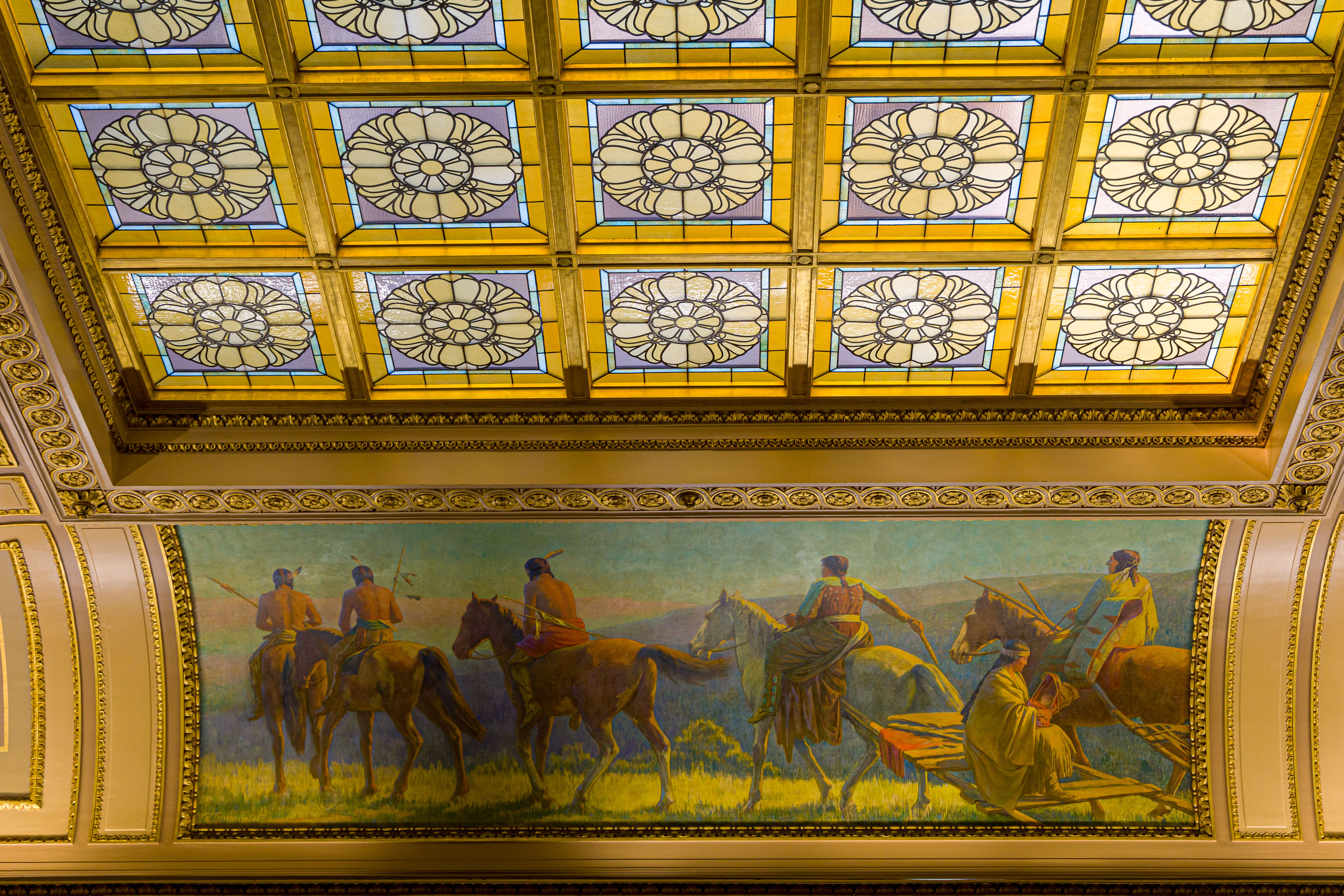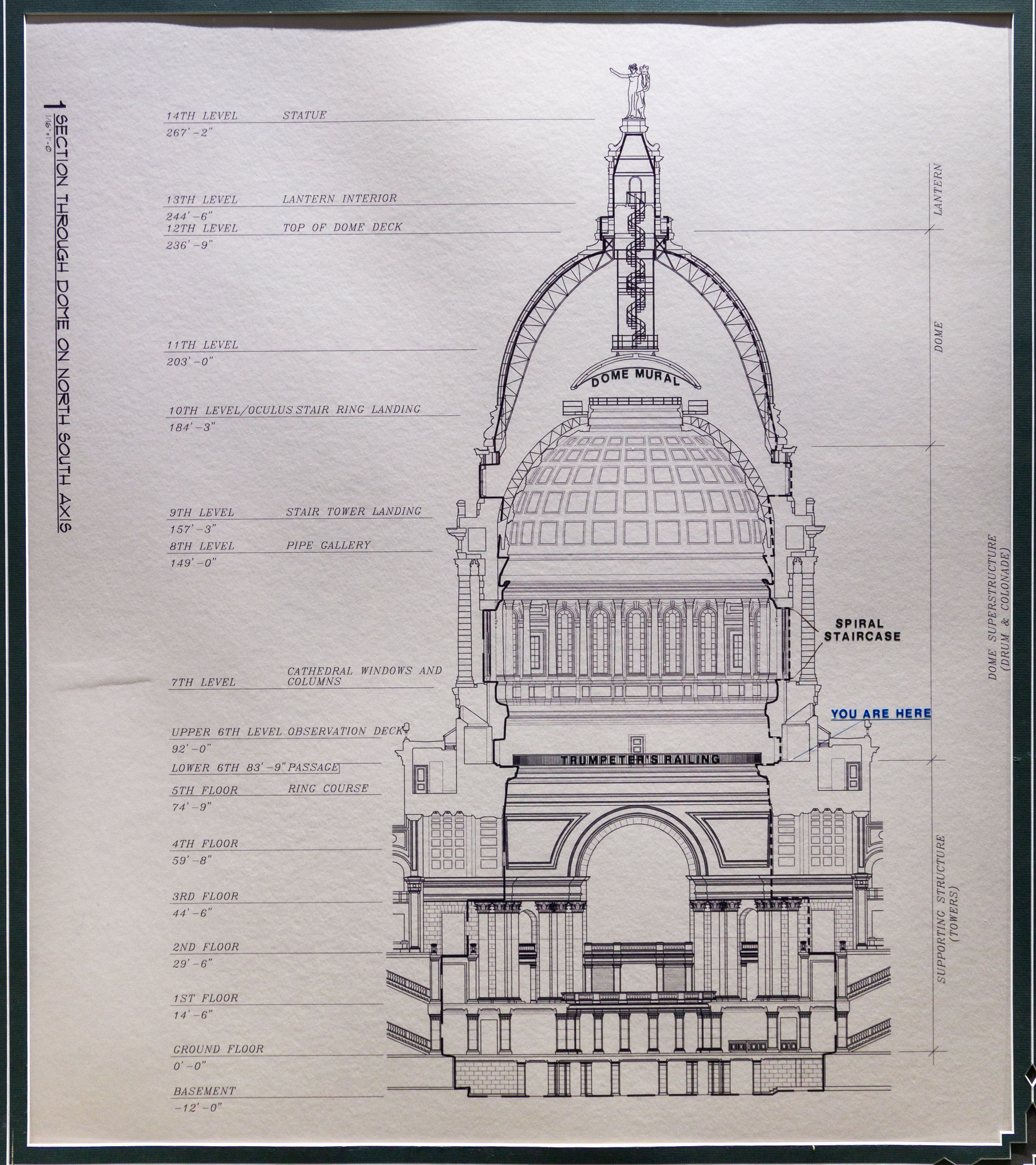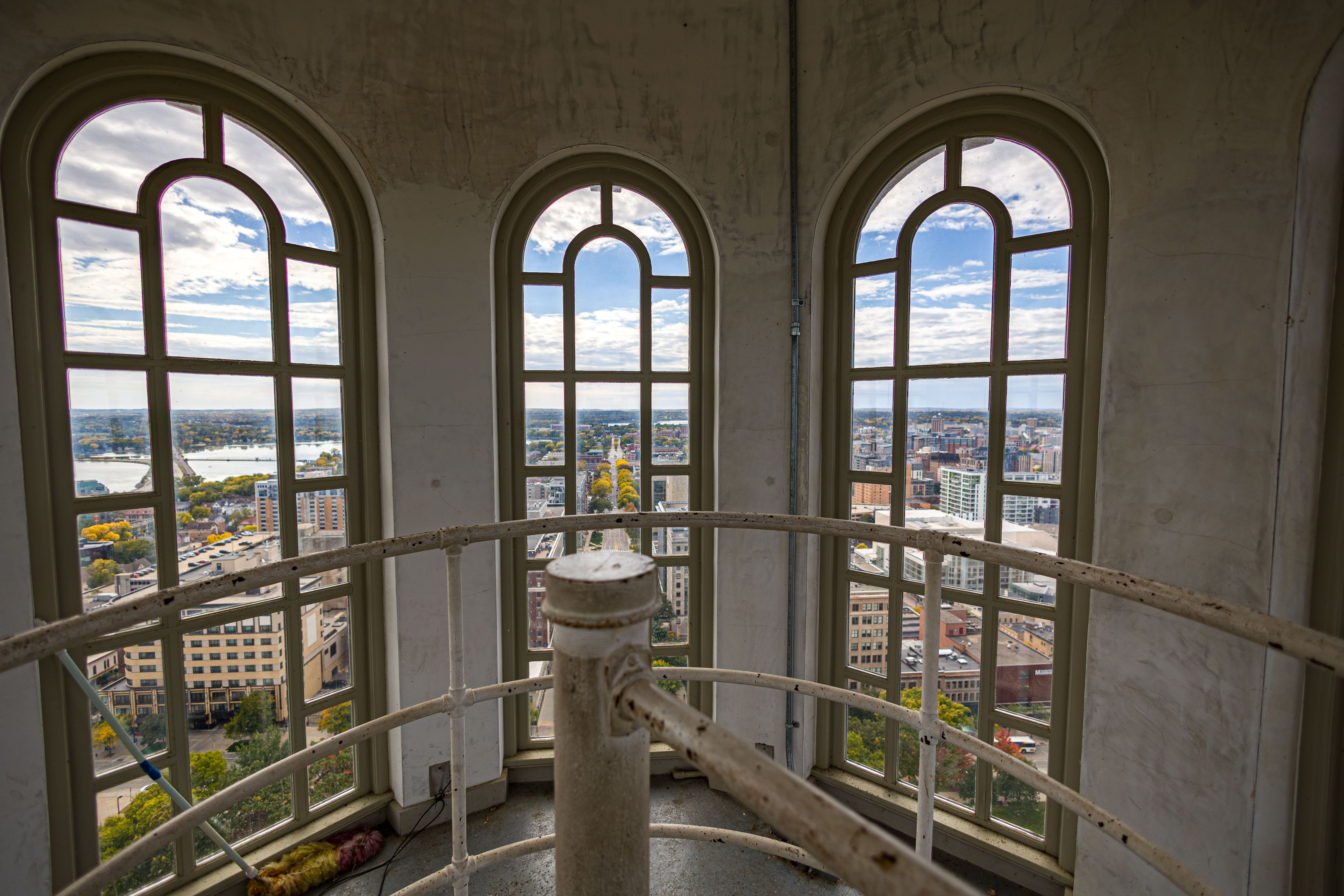 Photos from within the Capitol building, including a tour to the the very top levels (which closed to public tours in 1931). Includes panoramam from the top observation decks and view from inside the lantern at the very top around the inner dome mural and between the inner and outer domes (facades).