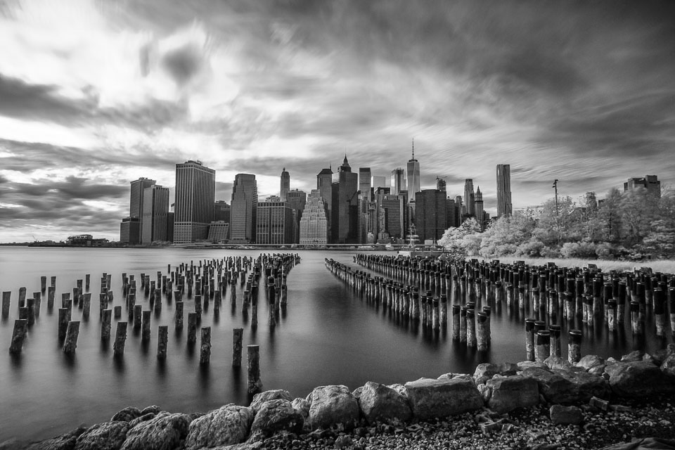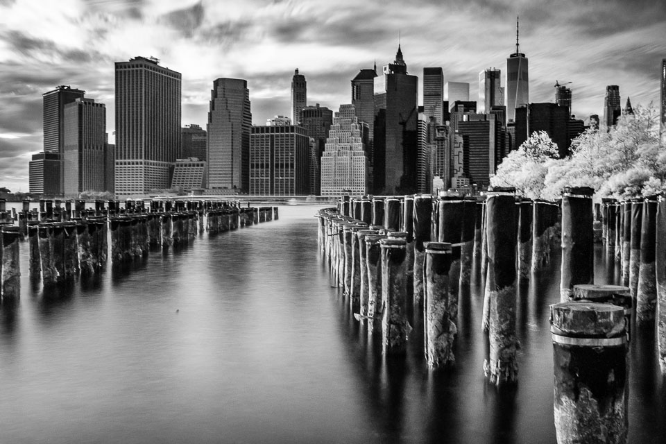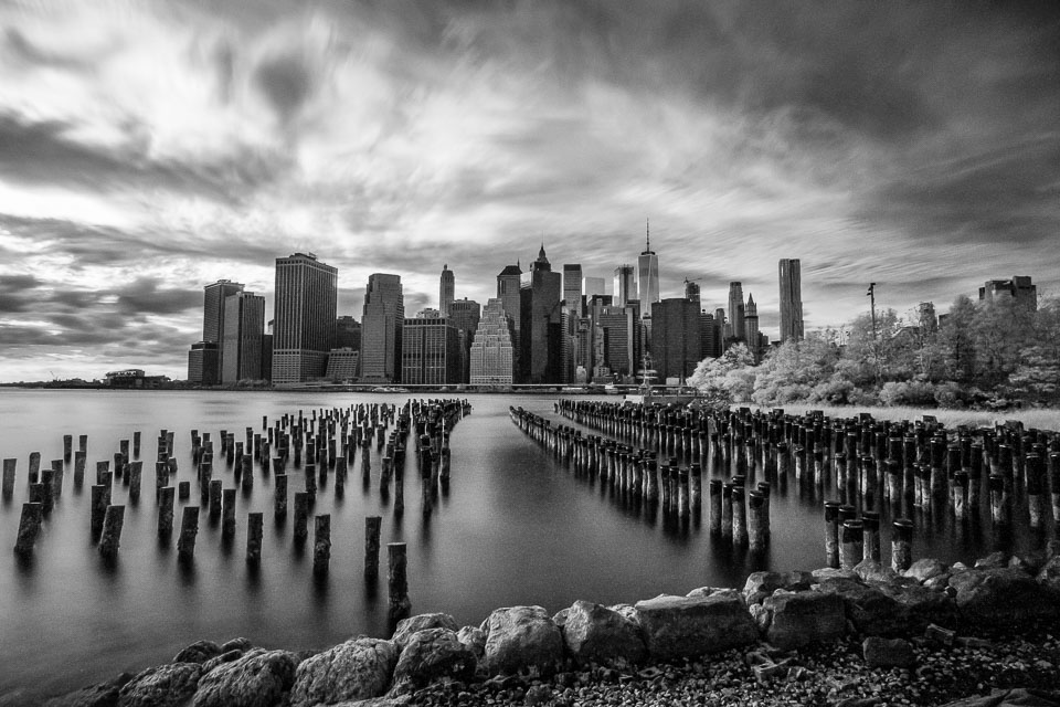 Manhattan over Old Pier 1, in infrared, New York City. Taken on October 7, 2017. Filename: 20171007-IMG_3831