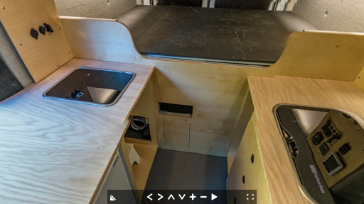 June 18th progress. Cabinets in (door and pantry not built), Refrigerator installed, stove and sink and countertop substrate dry fitted. Bugwall installed. Mule Bag installed